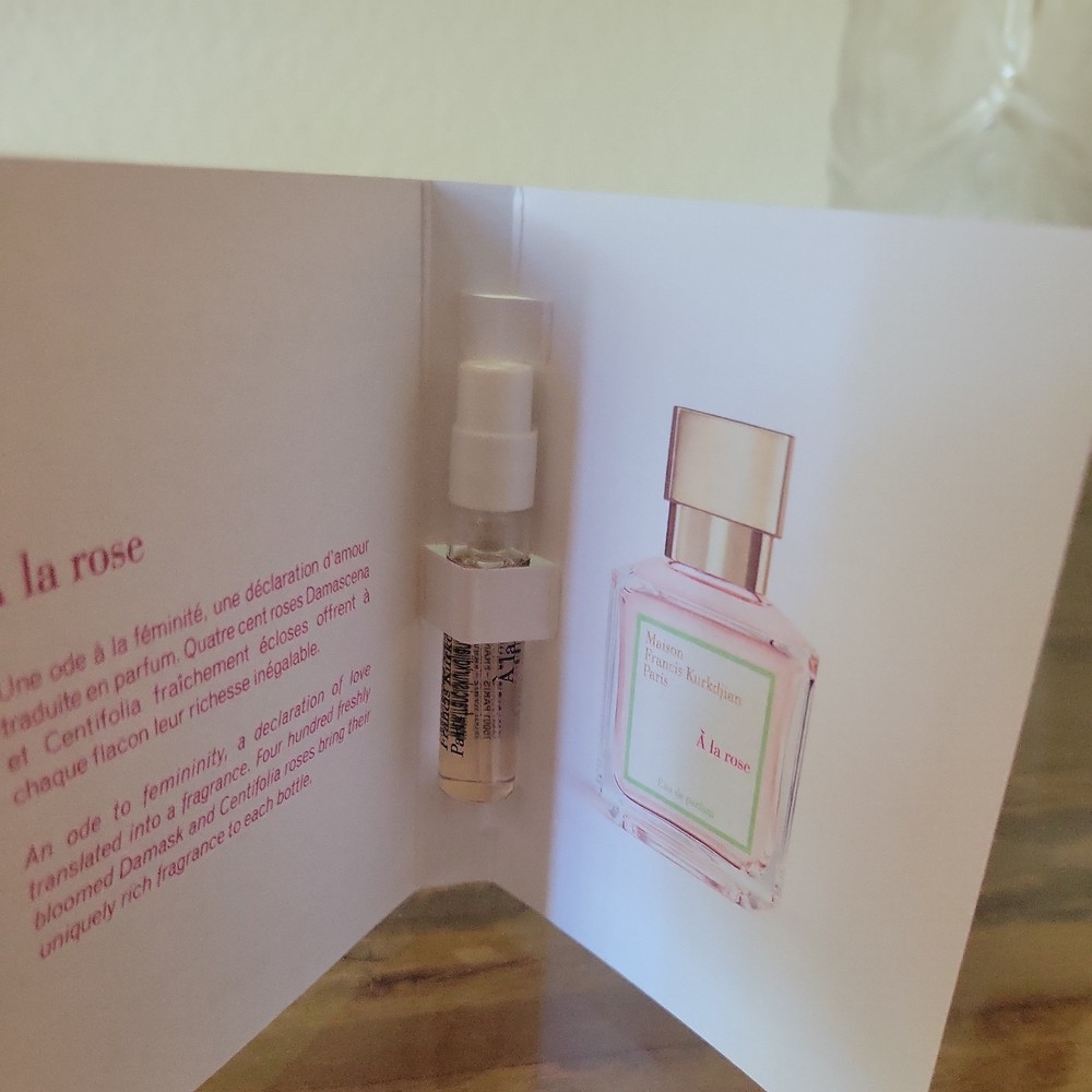 Brand: Maison Francis Kurkdjian Formulation: Spray Size Type: Sample Size Volume: 0.06fl oz Features: All Natural Ingredients, Cruelty-Free/No Animal Testing, Long Lasting Type: Eau de Parfum Scent: Sandalwood, White Musk, Saffron, Bitter almond, Amber, Cedarwood Country/Region of Manufacture: France Fragrance Name: a la rose