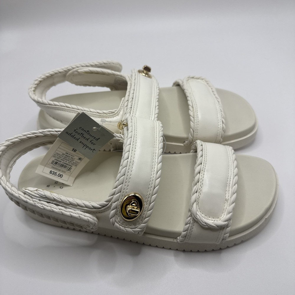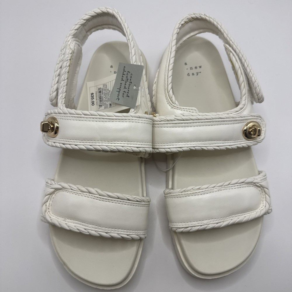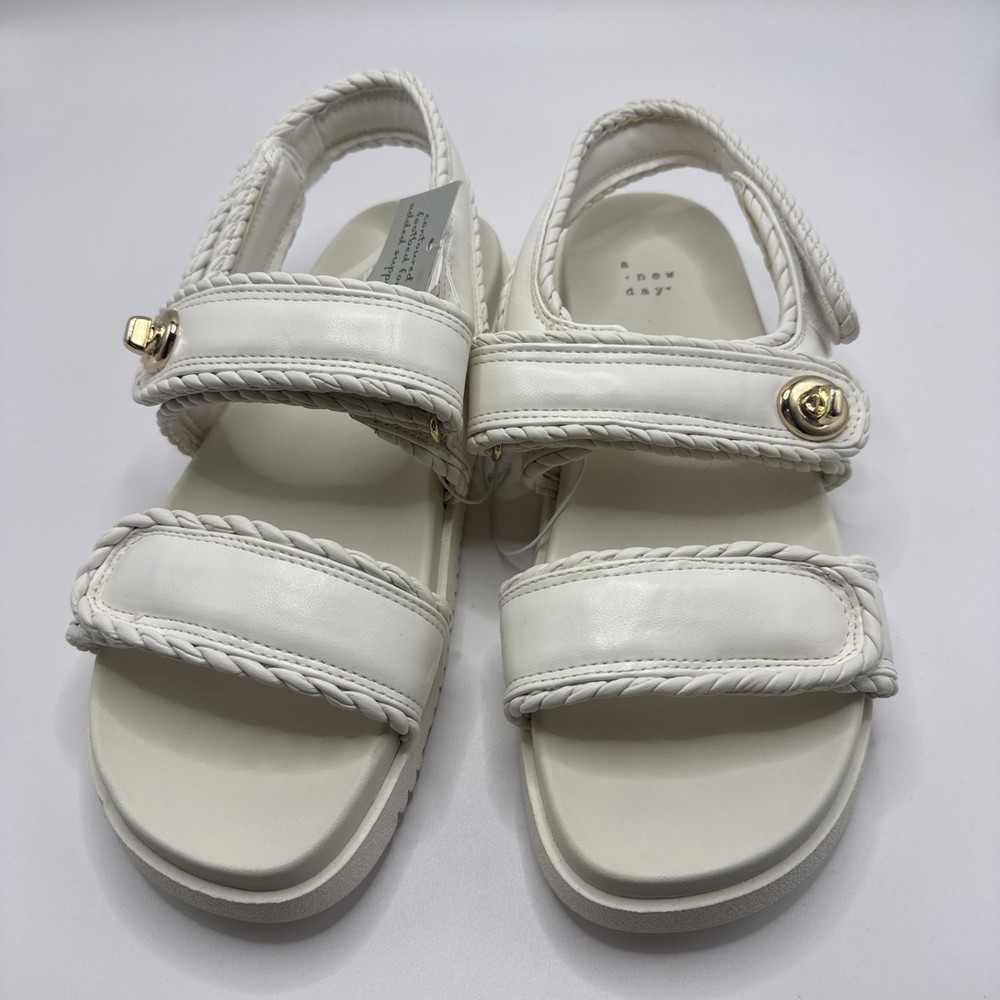 The product is a pair of A New Day women's shoes in size 10. These off-white flat shoes feature a synthetic upper material, making them durable and easy to clean. The stylish design and comfortable fit make them a versatile choice for everyday wear. A2T3 0370