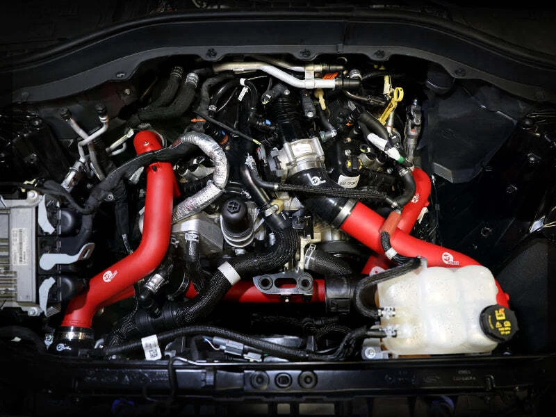 Smooth transitions in the mandrel-bent aluminum pipes decrease turbulence and minimize pressure loss, increasing horsepower and torque. This charge pipe kit provides a smooth transition between the turbo and the engine for lower operating temperatures and increased power. This kit includes high-quality, stainless-steel, SmartSeal clamps and heavy-duty, 5-ply, polyester reinforced silicone couplings for superior strength and durability. Finished in textured red powder coating with a unique laser-etched aFe POWER logo for a custom look. BladeRunner 2-1/4 IN & 2-3/4 IN Aluminum Hot and Cold Charge Pipe Kit Red Ford Explorer ST 22-23 V6-3.0L (tt) Fitment: Ford Explorer King Ranch 2022 Ford Explorer King Ranch 2023 Ford Explorer King Ranch 2024 Ford Explorer Platinum 2022 Ford Explorer Platinum 2023 Ford Explorer Platinum 2024 Ford Explorer ST 2022 Ford Explorer ST 2023 Ford Explorer ST 2024 Lincoln Aviator Base 2022 Lincoln Aviator Base 2023 Lincoln Aviator Black Label 2022 Lincoln Aviator Black Label 2023 Lincoln Aviator Black Label 2024 Lincoln Aviator Livery 2022 Lincoln Aviator Livery 2023 Lincoln Aviator Livery 2024 Lincoln Aviator Premiere 2024 Lincoln Aviator Reserve 2022 Lincoln Aviator Reserve 2023 Lincoln Aviator Reserve 2024
