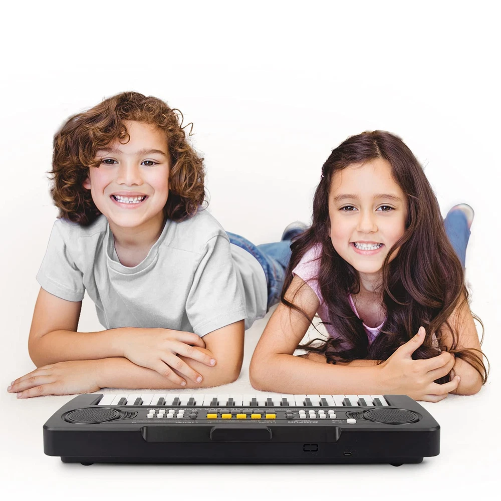 【MULTIFUNCTIONAL 37 KEYS PIANO】Play the piano function + DOUBLE SPEAKERS + ensemble mode + keyboard drum + record playback function + Automatic standby sleep function + 8 tones + 8 rhythms + 11 demo + 4 percussion. 【KIDS PIANO KEYBOARD PARAMETER】Age:3-8 years old. Product size: 16.9 * 6.2 * 2.1inch(L * W * H), Material: ABS, Non-toxic environmental protection plastic. The kids piano has been certified by CPC children and conforms to RoHS safety certification. 【USB POWER CORD】The DC power connector of the USB power cord is connected to the power jack at the back of the keyboard, and the other end is connected to a USB power adapter with a DC 5V-1A power output. 【ENLIGHTENMENT EDUCATION】Music mode lets them play the piano like a regular keyboard. The keyboard can also help little ones refine their motor skills as they practice pressing individual keys. There are different instruments to choose from, encouraging kids to explore different sound combinations. This toy helps your child with hand-eye coordination, musical theory and fine motor skills among other important skills! 【BEST GIFT】Nice box with a colorful sturdy cardboard package, convenient for storage and consolidation, great birthday/ Christmas gift/ festival gift for kids, best educational toys for 3 4 5 6 7 8 year old girls and boys.