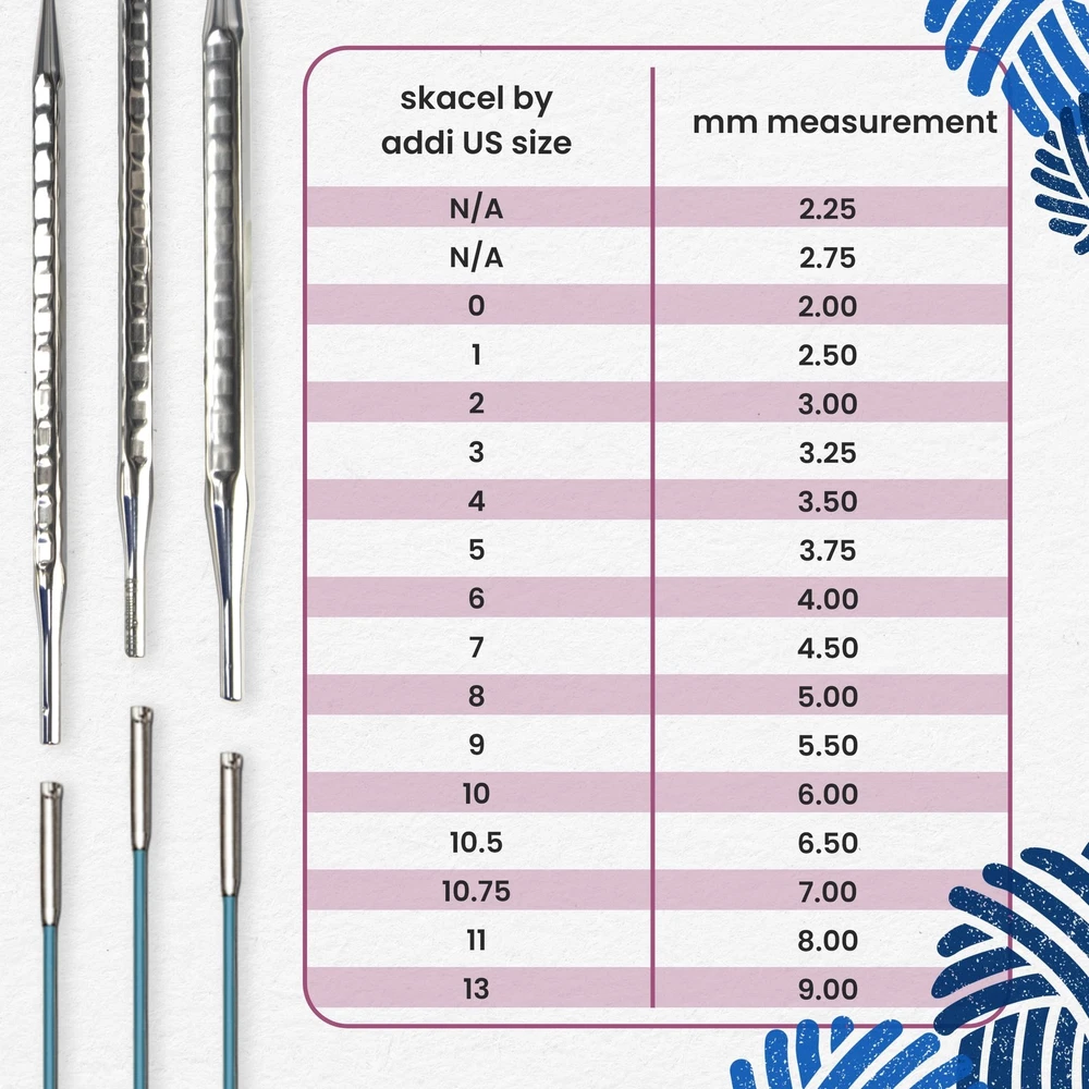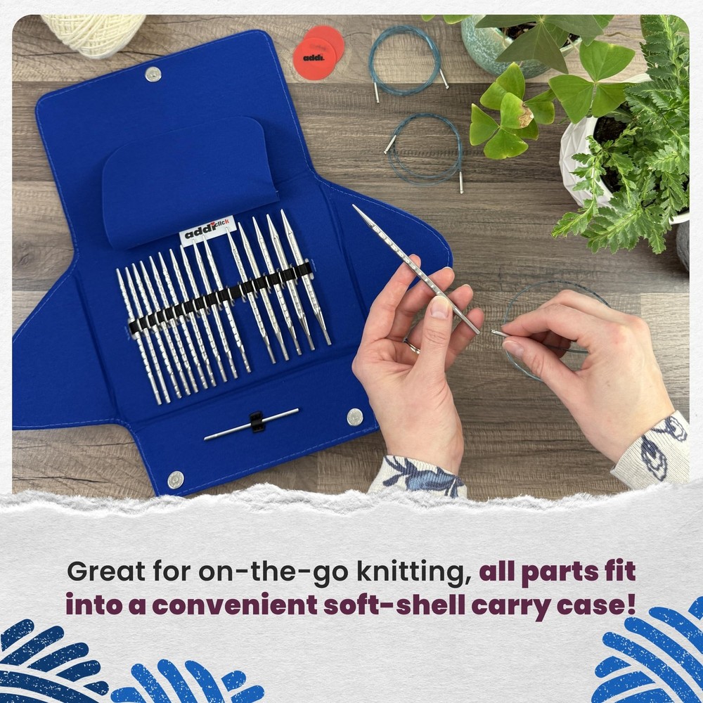 Seamlessly combining convenience and precision, the addiClick Standard Rocket2 (Squared) Interchangeable Knitting Needles Set is perfect for a variety of knitting projects for both beginners and seasoned knitters! Whether crafting cozy sweaters, socks, blankets, or intricate lace patterns, our circular knitting needles for adults are designed to offer smooth transitions and a comfortable grip, enhancing your overall knitting experience. Our single point needles provide a collection of interchangeable needle tips in different sizes, allowing you to construct a wide range of circular needles of varying length and thickness, so that you will always have the right size and length when you need it. The pliable nylon cords ensure your knitting flow remains uninterrrupted. Our addiClick tips require no tools to change; simply insert the cord deep into the tip, twist and release! Our addiClick knitting kits include8 sizes of mixed addiClick Standard Rocket2 (Squared) Tips (approx. US 4, 5, 6, 7, 8, 9, 10 and 11), 3 Pliable Blue Nylon Cords ( 24, 32, and 40 Inch), 1 Click Connector which helps to either store stitches or combine cords, and 1 addiGrip to make changing tips even easier. These knitting sticks are constructed with durable plated brass and ergonomic patented slightly rounded standard square tips, providing long-lasting reliability and reducing hand fatigue while knitting for long periods of time. Our yarn needles fit snugly in a convenient color-coded soft organizer case to provide storage for your knitting supplies while you travel. Explore your creativity and expand your knitting skills with confidence and efficiency with the addiClick Interchangeable Circular Knitting Needle Set! KNITTING NEEDLES KIT: Transform your knitting projects and enhance your creativity with the skacel addiClick Interchangeable Knitting Needles Set! Our knitting sets feature a collection of different size interchangeable needle tips, and pliable nylon cords which ensure your knitting flow remains uninterrrupted; addiClick tips require no tools to change; simply insert the cord deep into the tip, twist and release WHAT IS INCLUDED: The addiClick knitting kit includes 8 sizes of mixed addiClick Standard Rocket2 (Squared) Tips (approx. US 4, 5, 6, 7, 8, 9, 10 and 11), 3 Pliable Blue Nylon Cords ( 24, 32, and 40 Inch), 1 Click Connector which helps to either store stitches or combine cords, and 1 addiGrip to make changing tips even easier EASILY INTERCHANGEABLE: Our knitting needles provide a collection of needle tips in different sizes which are easily interchangeable, allowing the knitter to construct a wide range of circular needles of varying length and thickness; if your gauge calls for a needle one size larger or smaller than you anticipated, you just switch needle tips and you are ready to knit, which means you will always have the right size and length when you need it GREAT FOR ON-THE-GO KNITTING: Our knit needles and accessories fit snugly in a convenient color-coded soft carry case which can be easily packed in a purse, backpack, or suitcase, allowing you to easily take your knitting supplies with you for travel SUPERIOR CRAFTMANSHIP: Our circle knitting needles are constructed with durable plated brass and ergonomic patented square tips, ensuring long-lasting reliability and allowing for hours of knitting without discomfort