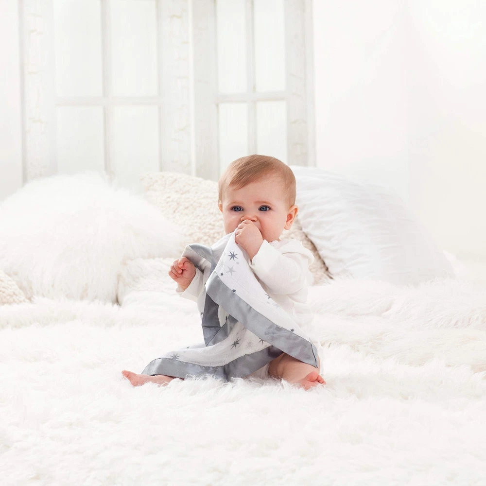 Made to comfort your little one wherever you are; our aden + anais security blankets are perfect for newborns and toddlers alike. The blankets are 100% cotton muslin and we've added a silky soft satin trim so baby has multiple textures to fuss over. Our two pack has mom and dad in mind; too. These pre-washed blankets are completely machine washable for the easiest cleaning; and while you have one snuggly security blanket in the wash; give baby it's identical twin to fill its place. The open weave allows for excellent airflow so you can rest assured while baby is all snuggled up with blankie in their crib or stroller. These muslin security blankets are available in multiple colorful patterns that are excellent for both girls and boys. Your little one will sleep soundly and have sweet dreams while cuddling with their most gentle security blanket which is sure to be treasured all throughout childhood. PREMIUM - 2 Identical Pre-washed super soft 100% cotton muslin blankets with satin trim; One for the wash and for snuggling; 16" x 16" (40.5cm x 40.5cm) perfect for infants; babies and toddlers COMFORTABLE & STYLISH – Breathable and comfortable cozy muslin fabric; Open weave allows for airflow; Choose from a variety of signature prints and color schemes for girls and boys or unisex VERSATILE – Perfect blanket from naptime and cuddling; Perfect to take everywhere you go and use as a playtime/surface blanket; stroller cover and more EASY CARE - Stays soft wash after wash PERFECT BABY GIFT – Our blankets are ideal gifts for baby showers; birthdays and holidays
