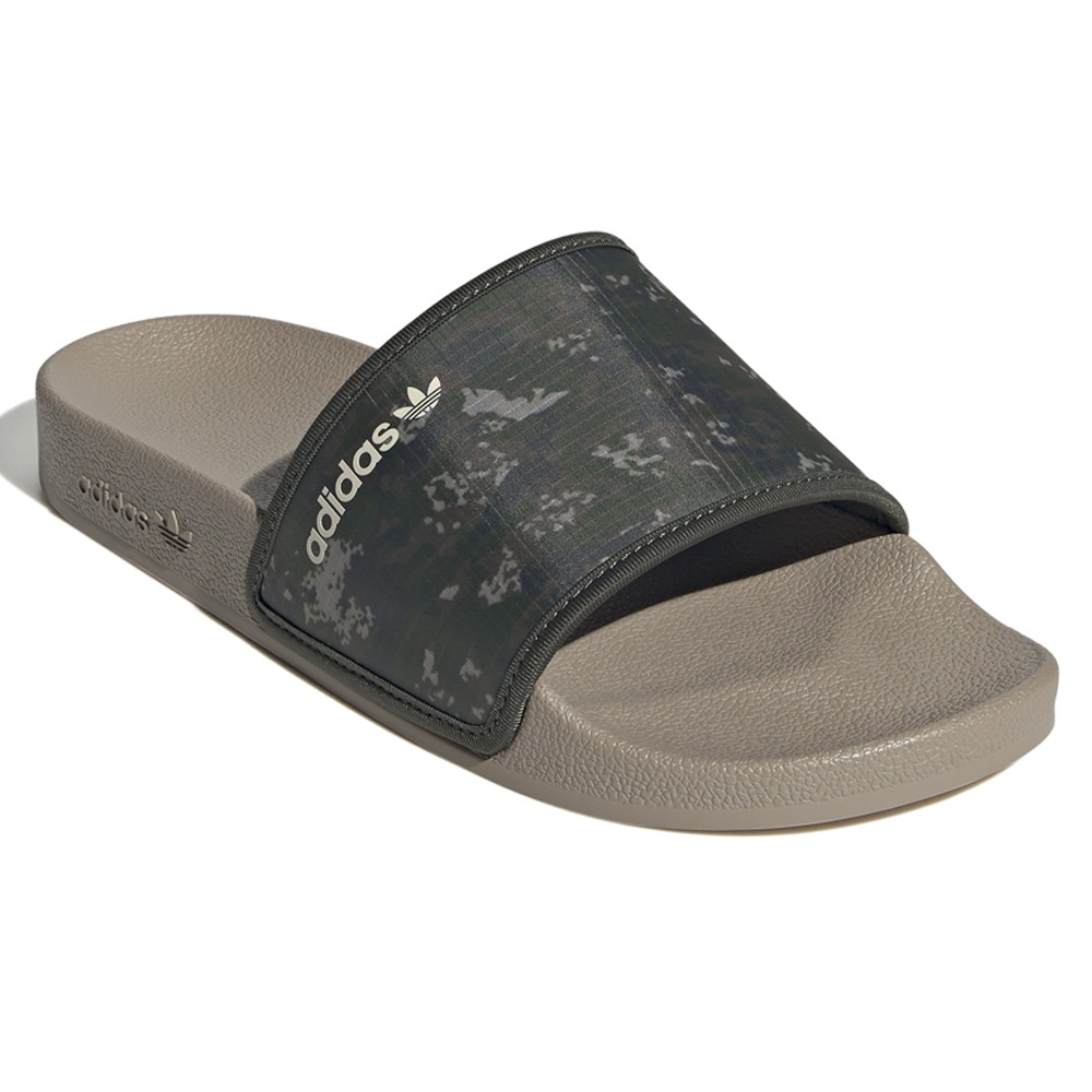Adilette Slide Sandals Product Details Slip-on Textile upper Textile lining Rubber outsole Regular fit Color: Blanch Brown You know them. You love them. They're the adidas Adilette Slides. An instantly recognizable classic that's been around since 1972, the OG slide continues to be seen everywhere – from the beach to the locker room, and on everyone from athletes to celebrities. This version combines camo with the iconic adidas 3-Stripes. Additional Details Manufacturer Color: Blanch Brown Color: Brown Occasion: Casual Gender: Mens Age: Adult Brand: