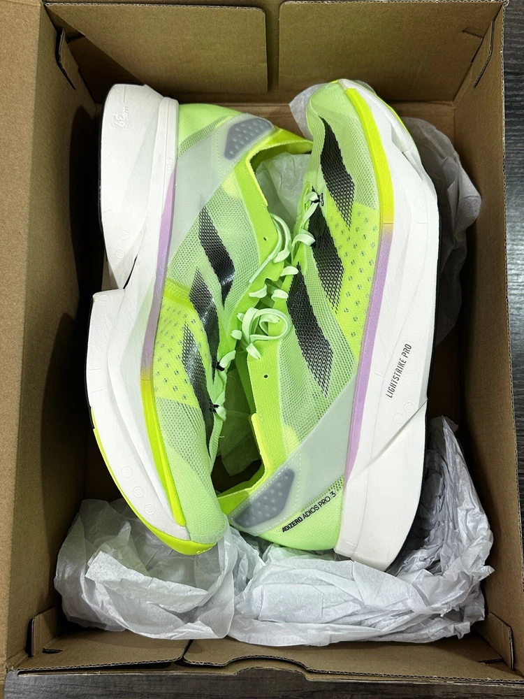 Thank you for considering our store! We appreciate your business and support! Item: adidas Adizero Adios Pro 3 'Neon Green Black Pink' Size: Men’s Size 12 Box may have some minor shelf wear or shipping wear such as small tears , dent , etc. Shoe is new i and unused. “New with box" Item number: IG6445 You must do so from your end within one hour of the order. Communications between buyer & seller are blocked by Ebay from the moment you purchase or at the acceptance of an offer. 100% authentic Shipped to you fast via USPS Priority Mail We consider all reasonable offers! With that said, we invite you to “watch" our items to receive special offers sent directly to you! Thank you for visiting