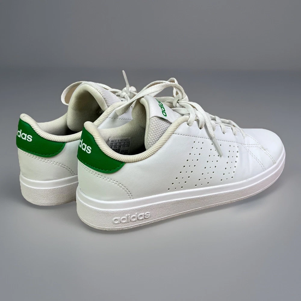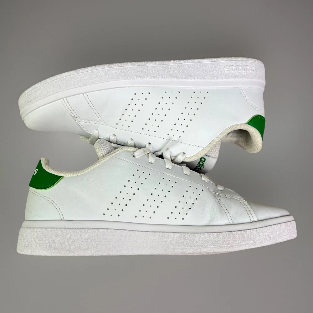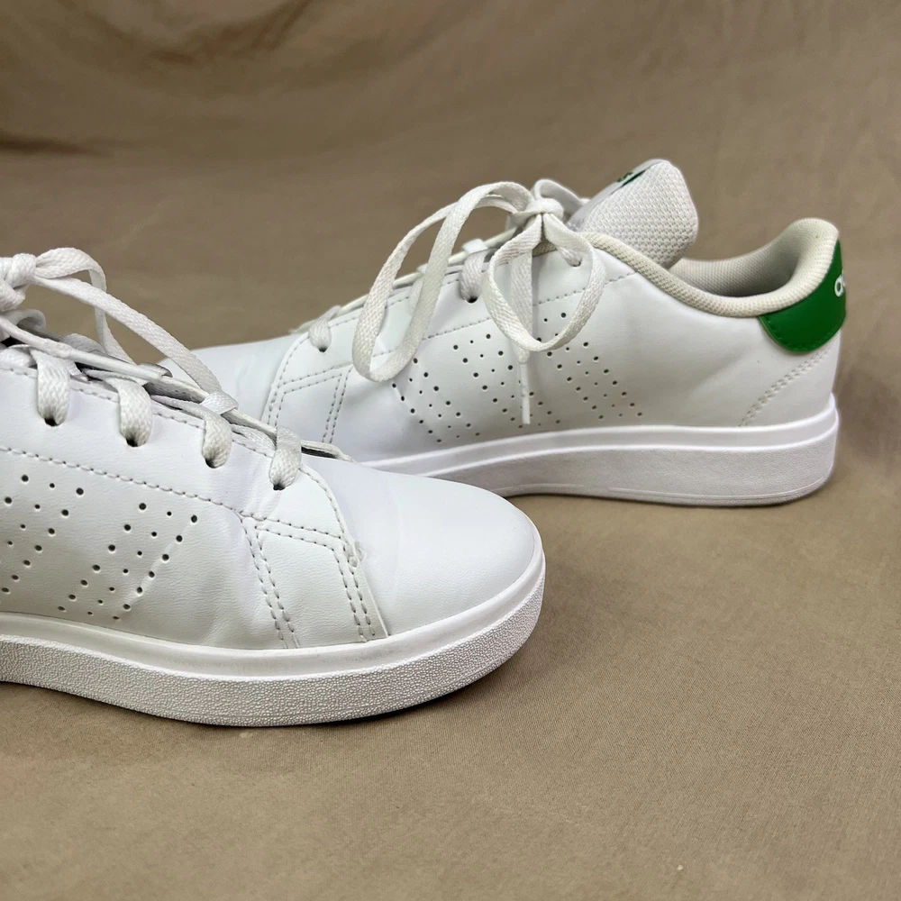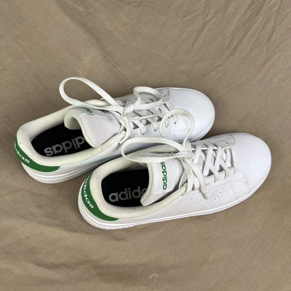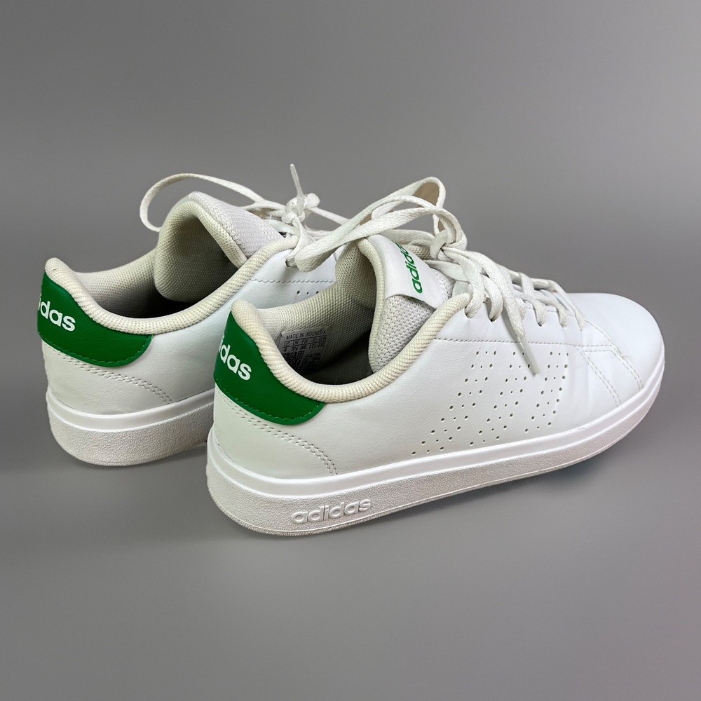 adidas Advantage Base 2.0 Shoes white shoes with green accents size 4 girls boys