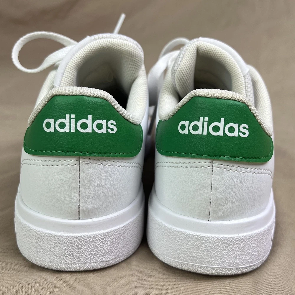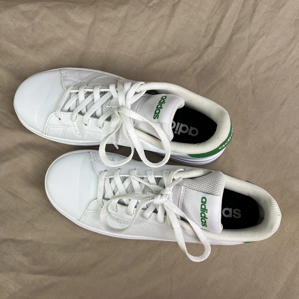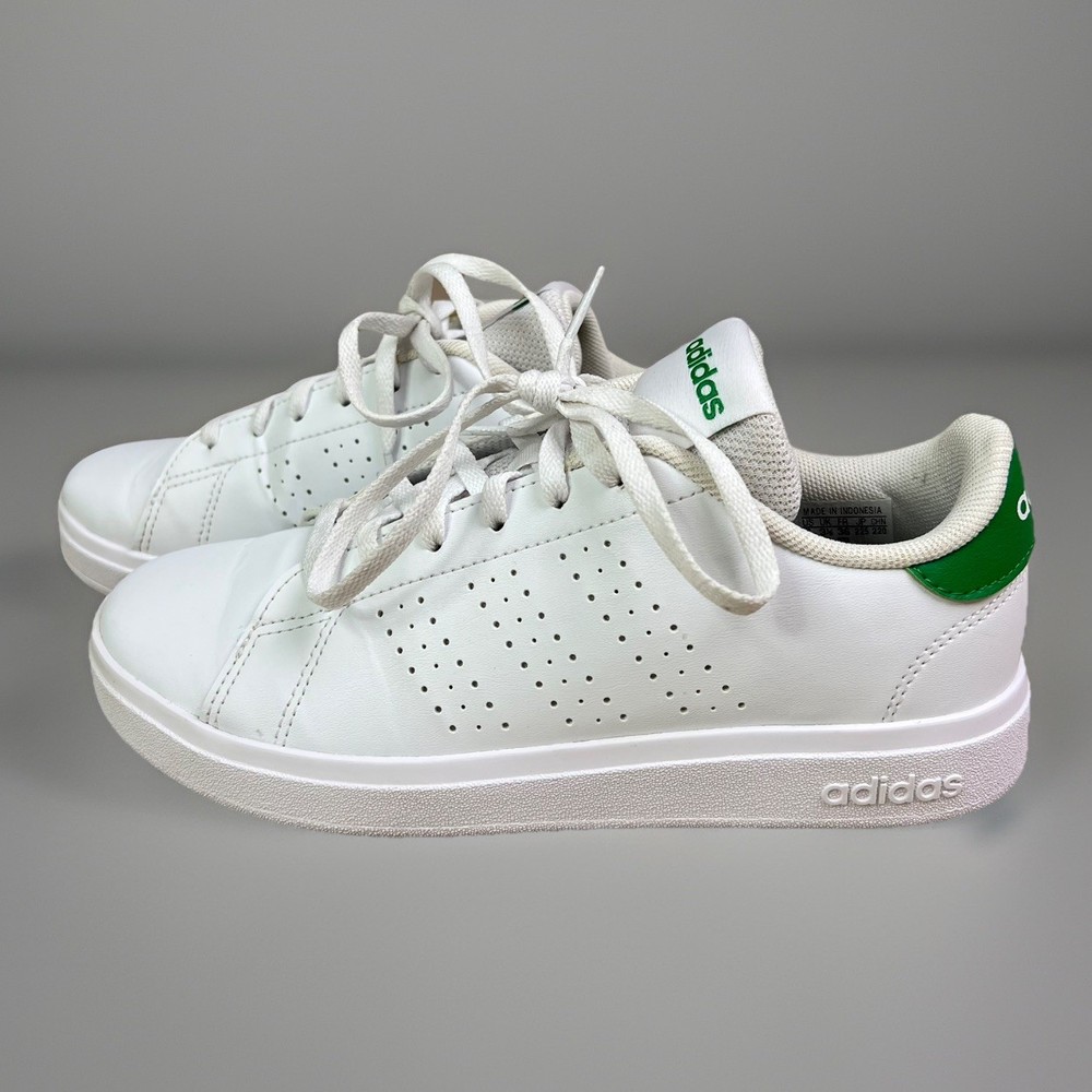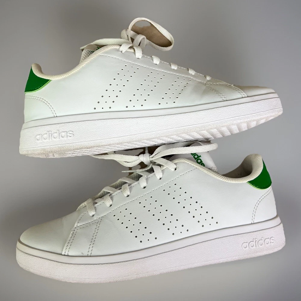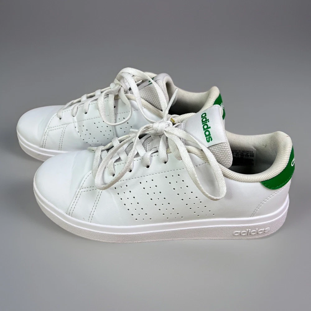 adidas Advantage Base 2.0 Shoes white shoes with green accents size 4 girls boys