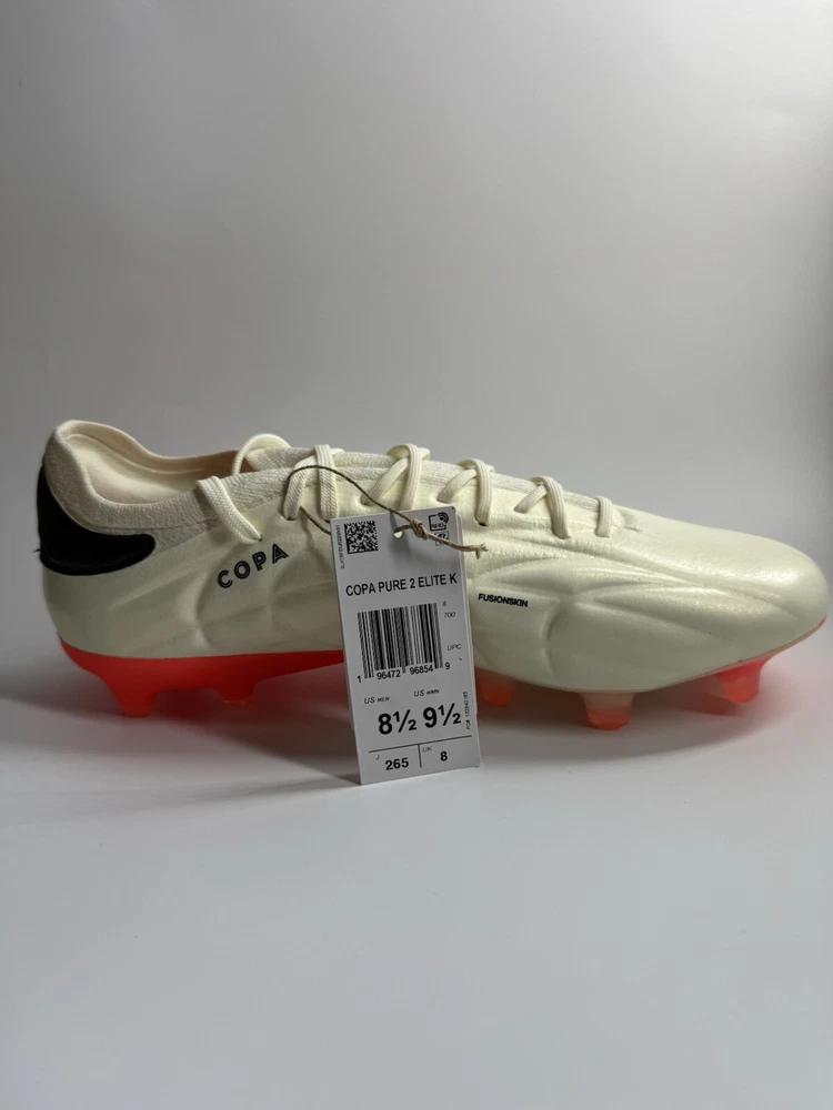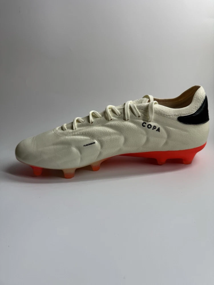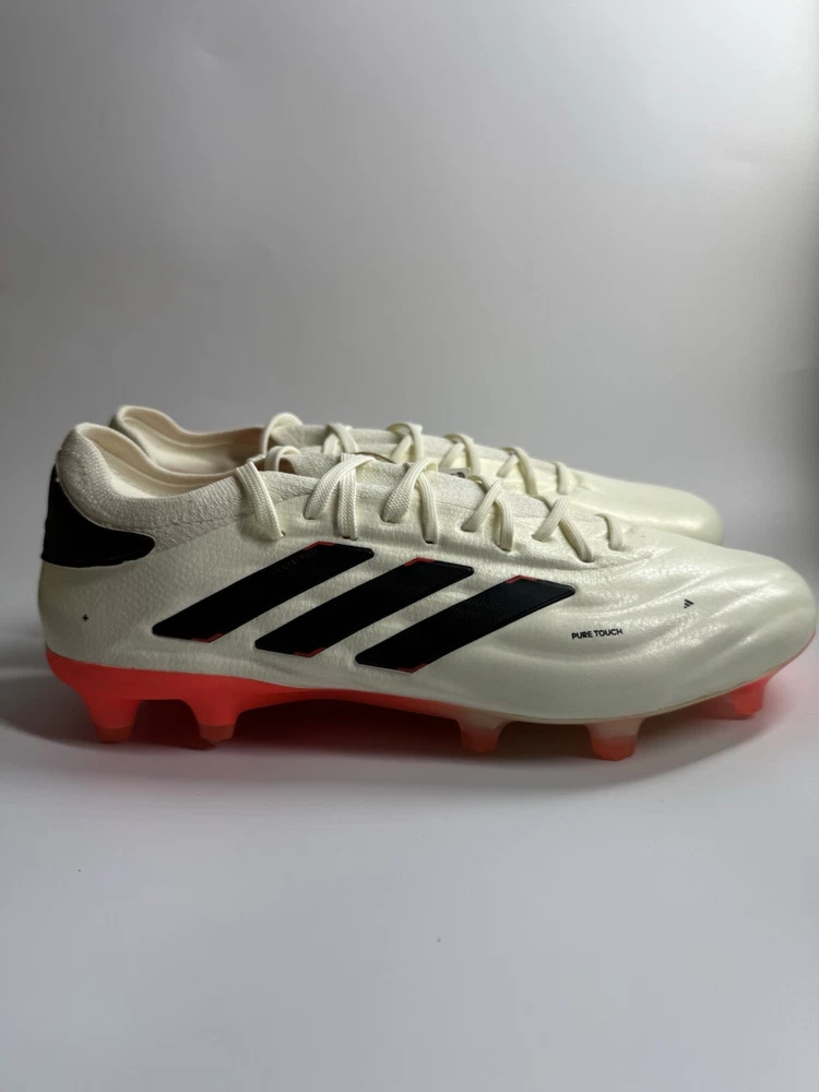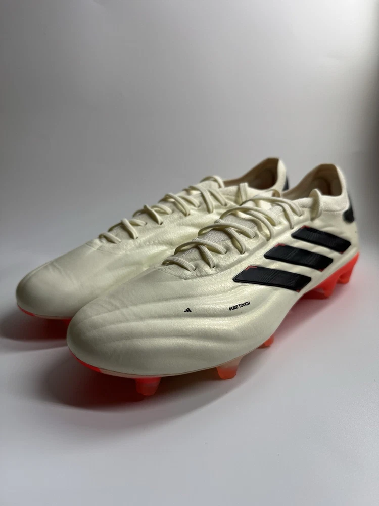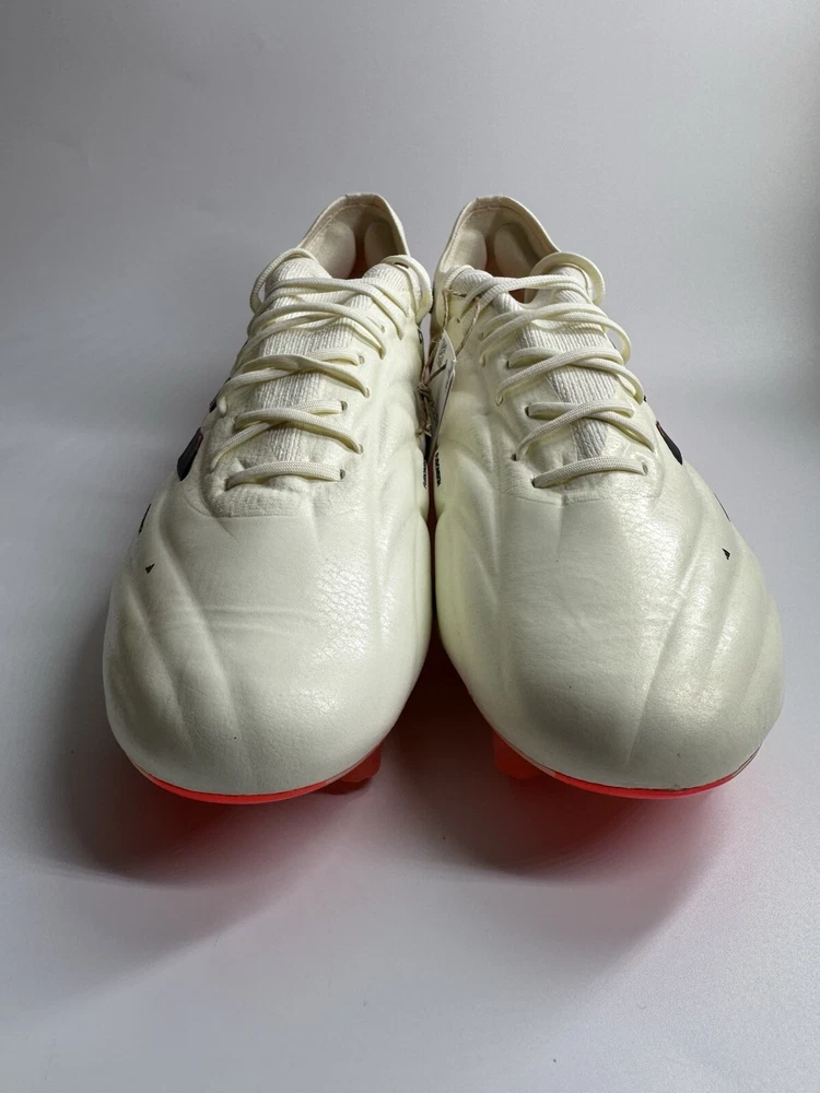 Regular fit Lace closure Fusionskin upper with leather forefoot adidas PRIMEKNIT collar Firm ground outsole Contains at least 20% recycled content Imported Product color: Ivory / Core Black / Solar Red Product code: IF5443 New with tags no box