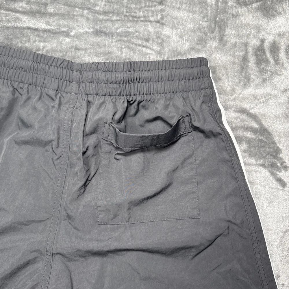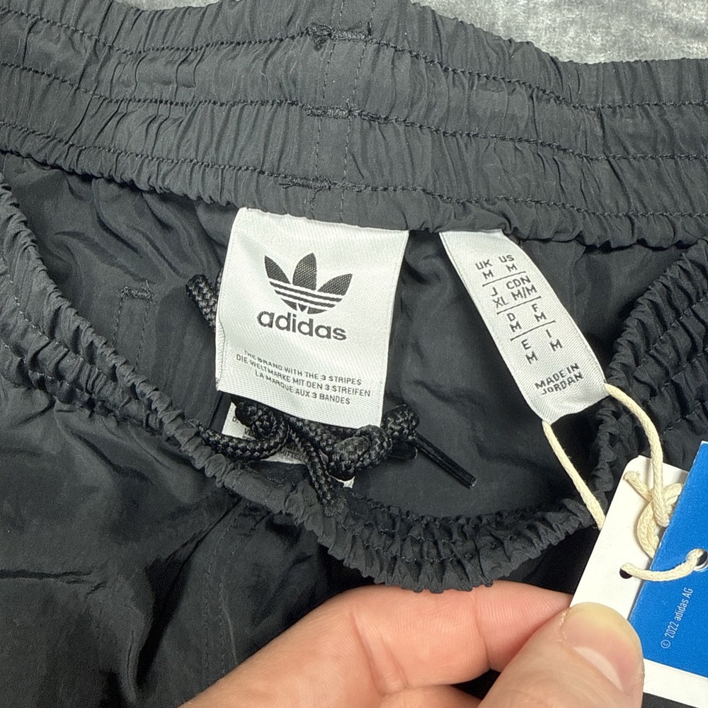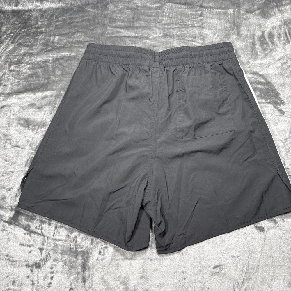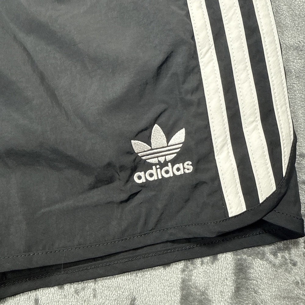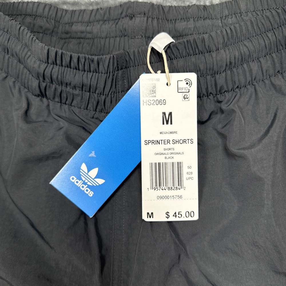 FAST FREE SHIPPING!! Trusted Seller Mens Size Medium The adidas Originals Classics Sprinter Shorts in Black and White, Men's Size Medium, are a stylish and versatile choice for various occasions such as travel, activewear, and casual wear. These shorts feature a drawstring closure for a secure fit, a 5-inch inseam for a comfortable fit, and are made from a blended fabric of polyester and nylon for durability. The classic striped pattern adds a touch of sporty style, while the elastic waist, zip pocket, and drawstring feature make them practical for different activities like cycling, golf, soccer, running, and more. Perfect for everyday wear or athletic pursuits, these shorts are a must-have addition to your wardrobe.