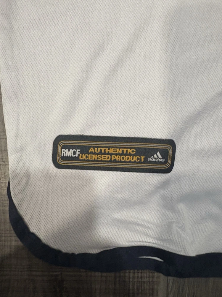 Product: Jersey Player: Zinedine Zidane Brand: adidas Size: L Sport: Soccer Gender: Men Officially Licensed: Yes Team: Real Madrid Color: White