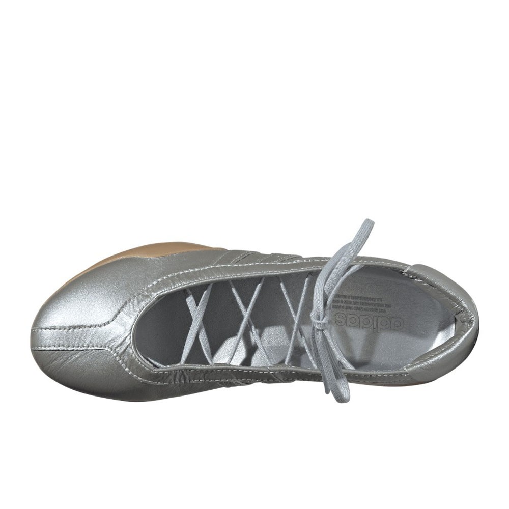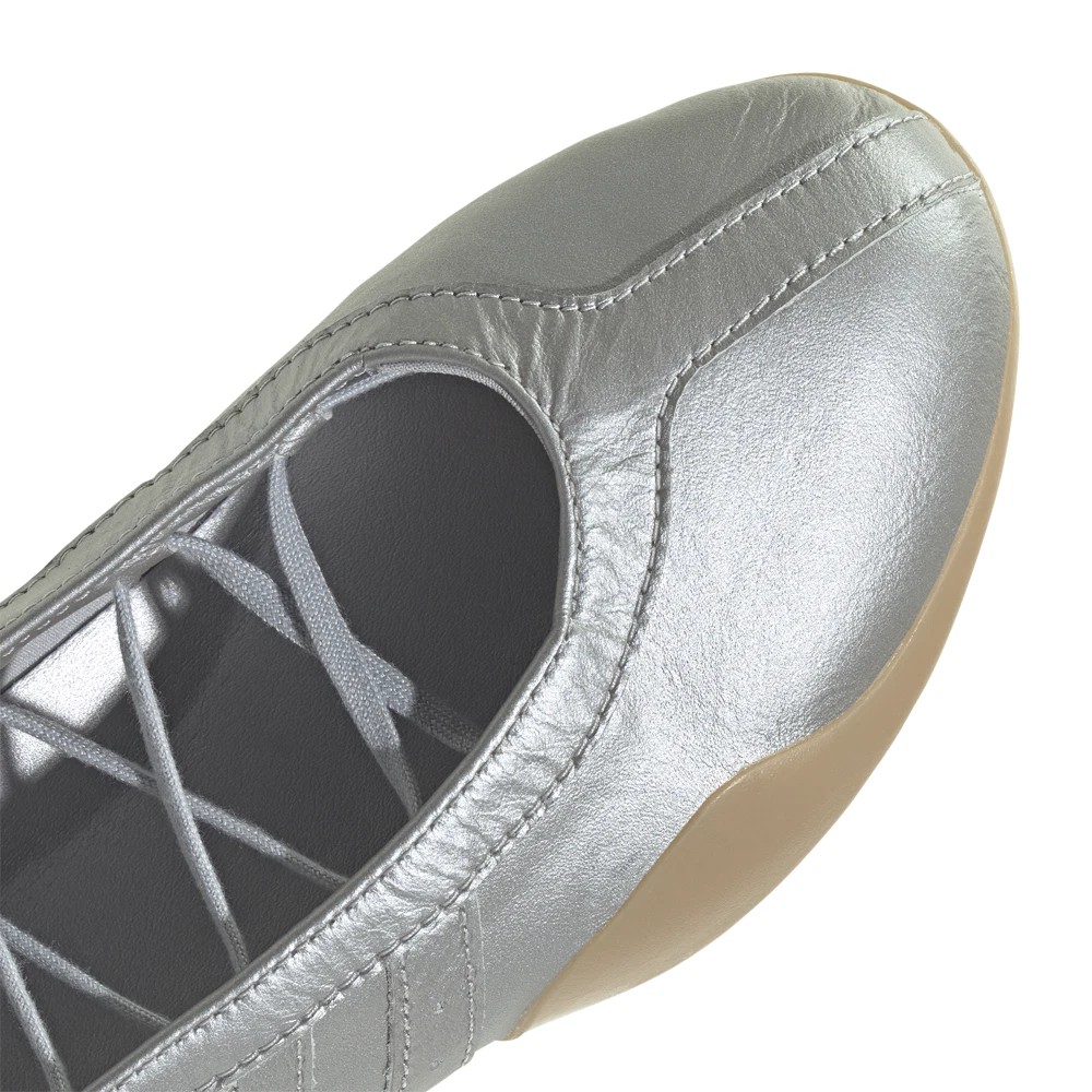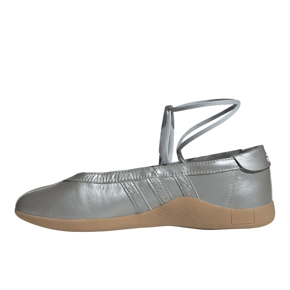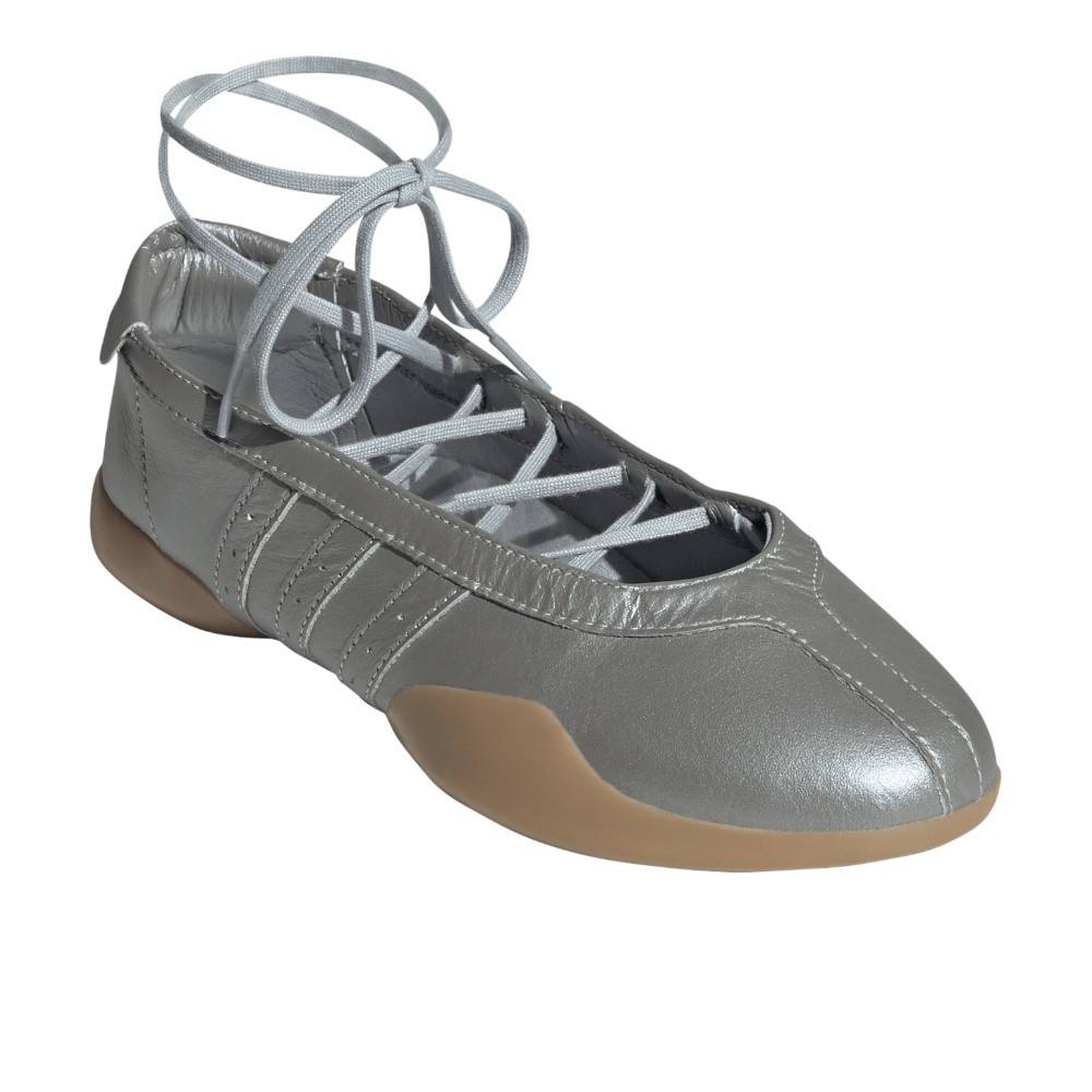 Taekwondo Mei Ballet Flats Product Details Regular fit Lace closure Leather upper Leather lining Rubber outsole Color: Silver Met./Silver Met. A modern reinterpretation of the early-'00s Jisho, these adidas Taekwondo Mei shoes take a ballet-inspired silhouette and bend it toward the trends of today. A smooth leather upper and soft suede are contrasted with sporty leather 3-Stripes and a heel tab. Three sets of laces in different lengths and materials add DIY flair and a customizable look. Additional Details Manufacturer Color: Silver Met./Silver Met. Color: Silver Occasion: Casual Gender: Womens Age: Adult Brand: