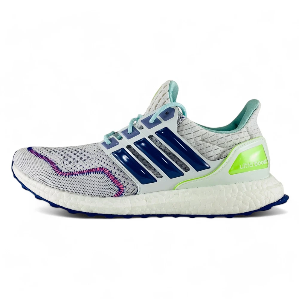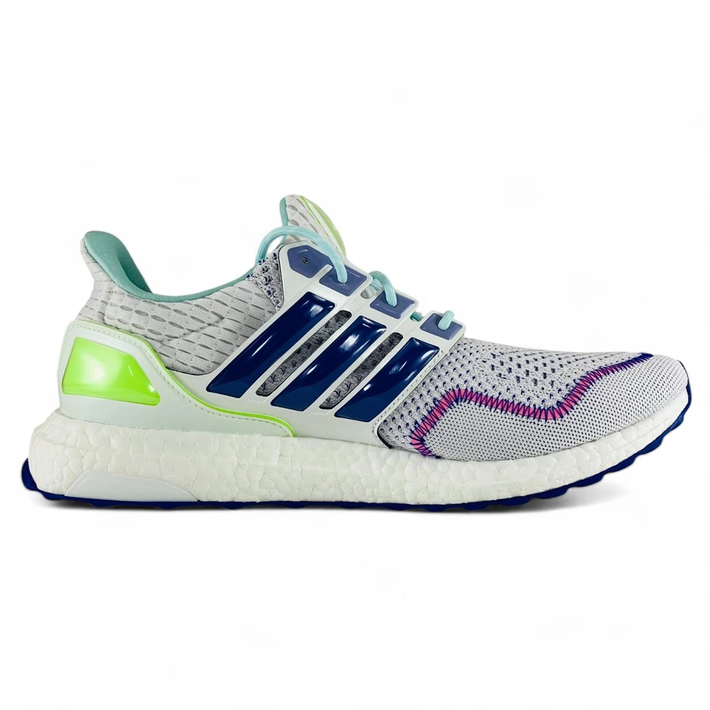 adidas UltraBoost 1.0 White Blue Lemon Men's Running Shoes Sneakers ID0145 From running your daily errands to a weekend run with friends, these men's adidas Ultraboost 1.0 shoes are designed to keep you comfortable in almost any occasion. An adidas PRIMEKNIT upper gently hugs your feet while BOOST on the midsole provides energy return and cushions every step of the way. The Stretchweb outsole flexes naturally for an energized ride, and Torsion keeps your gait stable. When you put these running shoes on, you're ready for today's adventures in both comfort and style. Product Condition These shoes are brand new and include their original shoe box, unless otherwise noted. The shoe box may have minor damage. This is a 100% authentic product, guaranteed or your money back. Sizing All size options provided in this listing are U.S. men's shoe sizes. Please reference the chart appearing in our product images to find your approximate size conversion (e.g. UK sizes, EU sizes, etc.). More Details Suggested Retail Price: $190 Brand: adidas Model: UltraBoost 1.0 White Blue Lemon Style Code: ID0145 Gender (for sizing): Men Age: Adult Main Color: White Customized: No Closure: Lace-up Shoe Shaft Style: Low-top Great For: Running, Jogging, Working Out, Exercising, Going to the Gym, Walking, Running Errands, Going Out, Daily Activities, Casual Wear, Going to Work