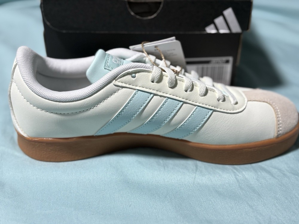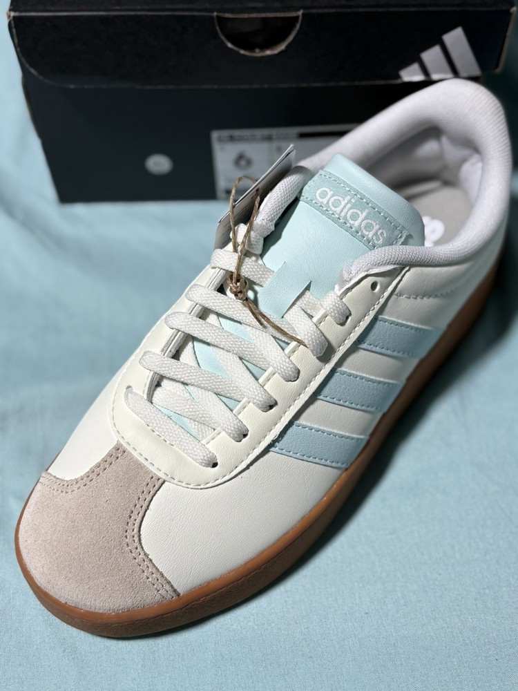 Performance/Activity: Walking Shoe Shaft Style: Low Top Pronation: Supination Manufacturer Color: Core White/Aurora Ink/Halo Blue Type: Athletic Closure: Lace Up Signed: No Upper Material: Leather Department: Women Lining Material: Fabric Fabric Type: Blended Fabric Features: Comfort Color: White US Shoe Size: 6 Pattern: Solid Model: adidas Vl Court Cleat Type: Rubber Accents: Logo Nickname: Core Halo Mint Brand: adidas Customized: No Outsole Material: Rubber Season: Spring, Summer Style: Sneaker Product Line: adidas Vl Court Style Code: JI1767 Vintage: No Occasion: Casual