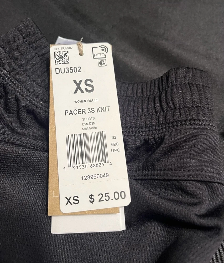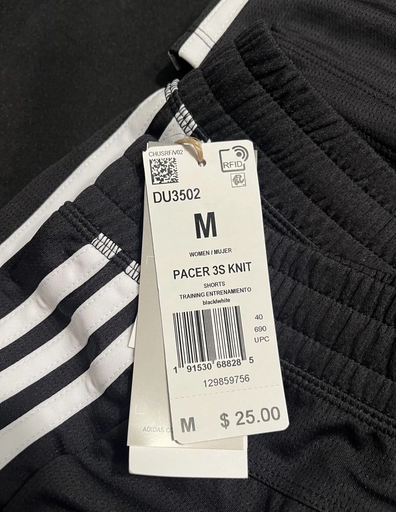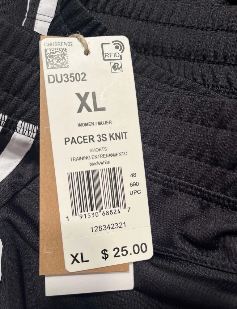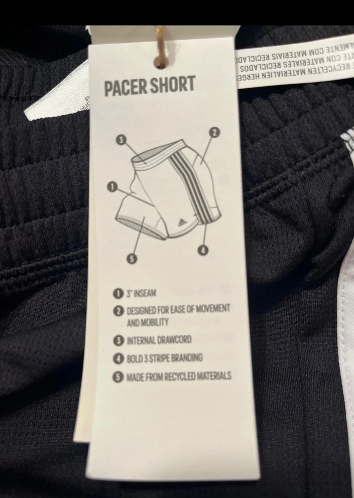 Adidas Pacer knit 3 Stripe shorts Black Size XS, S, M, XL 3β inseam Internal drawstring No built in liner No pockets MSRP $25 π₯ I work for a pallet/truck liquidator. This product is overstock, shelf pull or return from a major grocery or department store chain. For this reason, there may be tags, tag residue, torn product label, and/or damaged outer packaging due to transport, stocking, or customer handling. As a reseller, I do my best to maintain or restore the overall outer presentation of the item but sometimes it is entirely out of my control. π§ I am strictly a reseller. I do not work for the products manufacturer or the products point of original sale. I, personally, make no guarantees regarding this product. If the product boasts a guarantee, please contact the product/brand directly with any questions or concerns. Likewise, any warranties are strictly from the brand and all warranty questions should be directed to them. I do not have any information and make no guarantees regarding the validity of a warranty when an item is purchased through a reseller as opposed to a retailer. π© When items are sealed, I do not disrupt the seal to photograph, observe, or test the product. π¦ Unfortunately, shipping prices are outrageous. For this reason, Buyer pays a flat rate shipping. That price is approximately 1/3 of the total shipping cost.