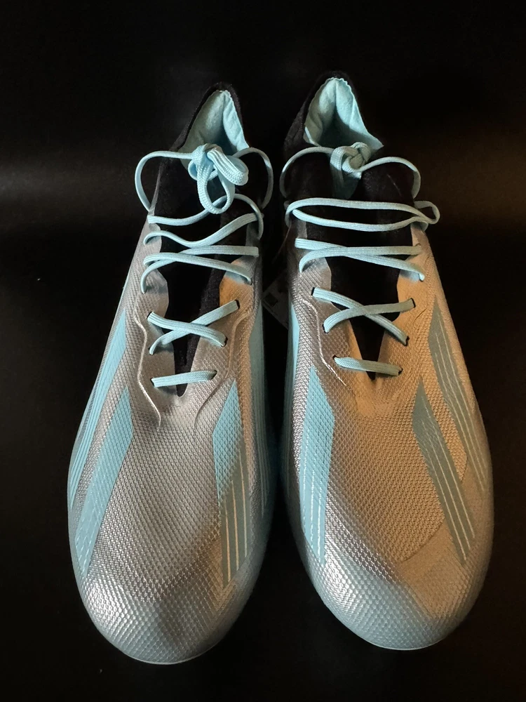 Regular fit Lace closure Aeropacity Speedskin upper adidas PRIMEKNIT collar Aerocage engineered support lining Upper contains a minimum of 50% recycled content Imported Product colour: Silver Metallic / Bliss Blue / Core Black Product code: IE4079