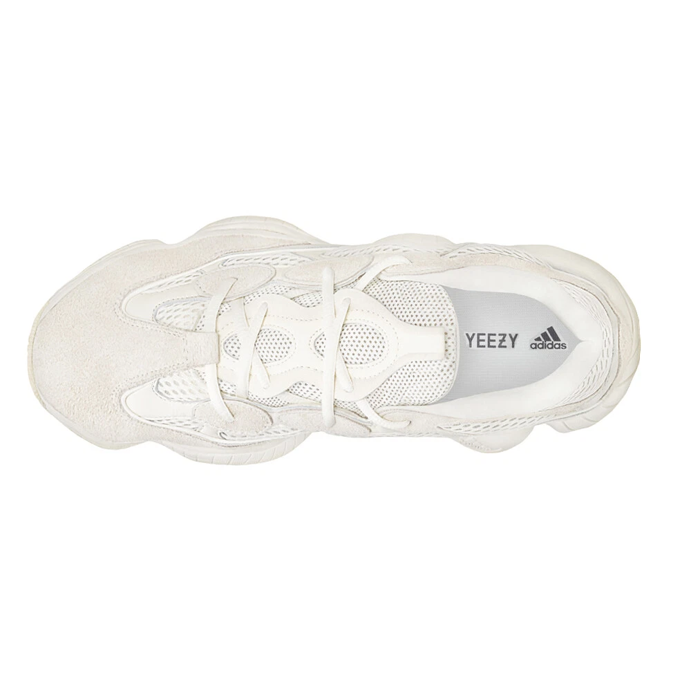 Adidas Yeezy 500 Lace Up Sneakers Product Details Mesh and suede upper Lace up closure adiPRENE midsole Rubber outsole The adidas Yeezy 500 ‘Bone White’ revives a subdued colorway of the retro-inspired model. An ivory finish floods the upper, composed of airy mesh with durable overlays in suede and leather. A seamless rubber mudguard offers improved support and abrasion resistance, while reflective piping around the eyestay provides improved visibility in low-light conditions. Lightweight cushioning arrives via an adiPRENE+ midsole, featuring podular construction that takes its cues from the adidas KB8 3. Additional Details Color: White Occasion: Casual Gender: Mens Age: Adult Brand: