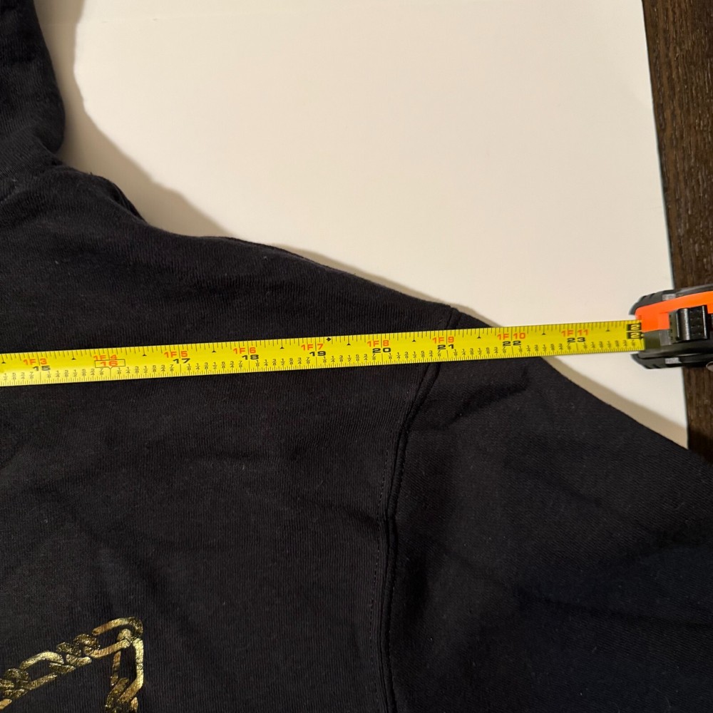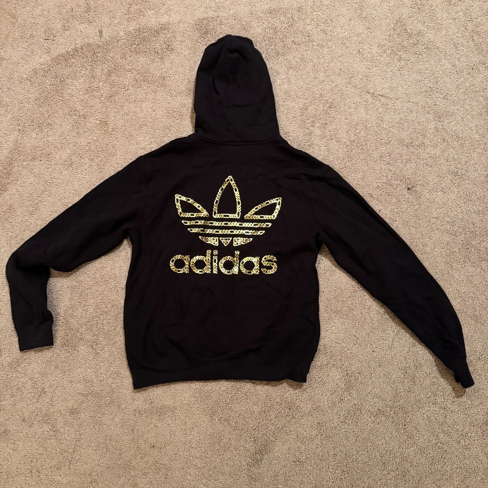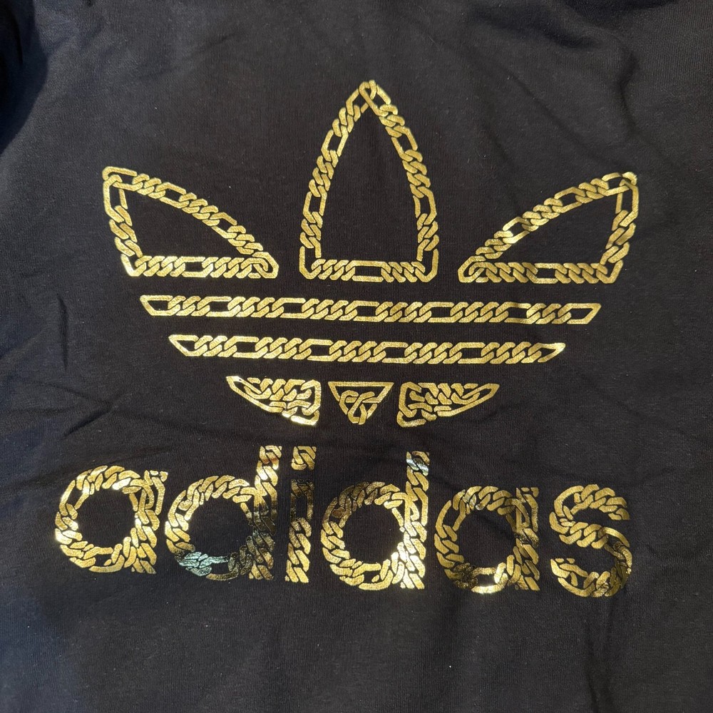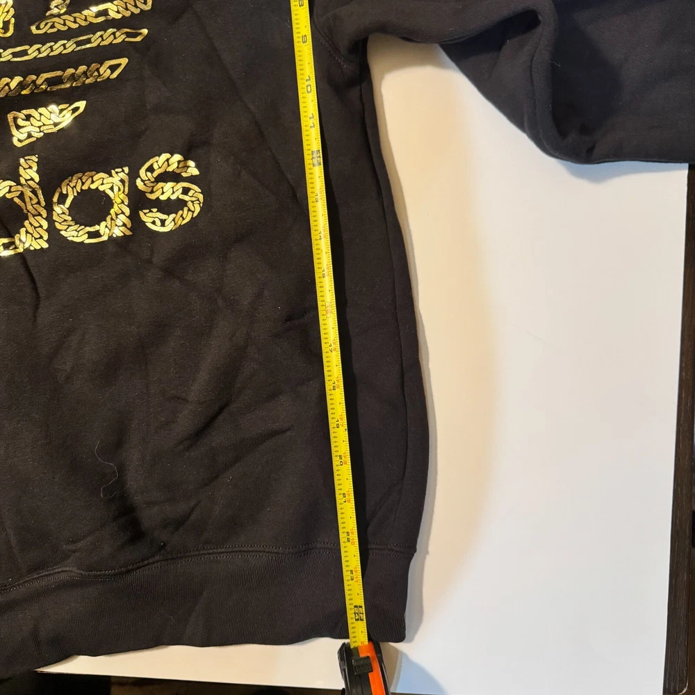 Crafted for comfort and style, the Adidas Originals Gold Chain Black Anniversary Hoodie in a medium size is an ideal addition to any casual wardrobe. This regular-fit pullover features a striking graphic print that celebrates a legacy of sporty excellence, complemented by a classic black color that offers versatile styling options. Functionality meets fashion with this hoodie's all-season suitability, making it perfect for a wide range of activities from basketball to skateboarding, or simply for everyday wear. It comes equipped with a hood for extra protection against the elements, and convenient pockets to keep essentials close. Whether you're hitting the gym or enjoying a leisurely walk, this hoodie is designed to support your every move.