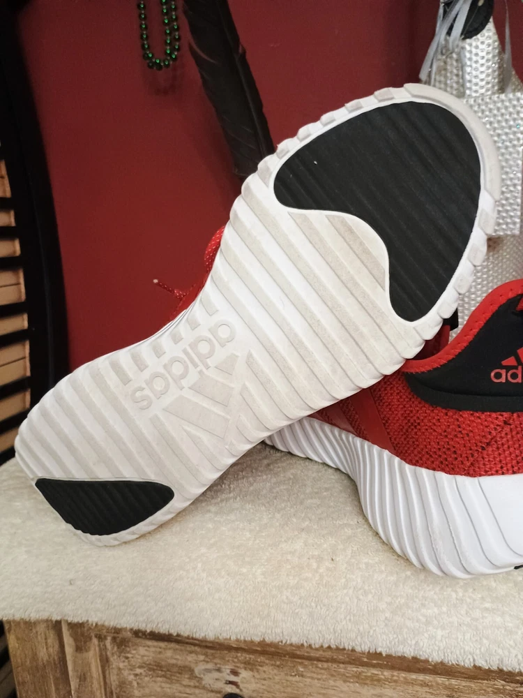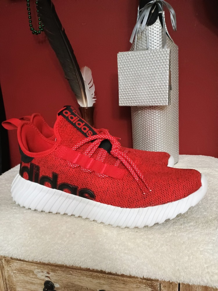 These adidasMen's Kaptir 3.0 sneakers in size 11.5 feature a solid red and black Tweed color with a lace-up closure. They are designed for casual wear and have a mesh upper material with a rubber outsole. The sneakers are from the adidas 3.0 brand and are lined for comfort. The model is suitable for activities like walking, cycling, cross training, crossfit, and running.