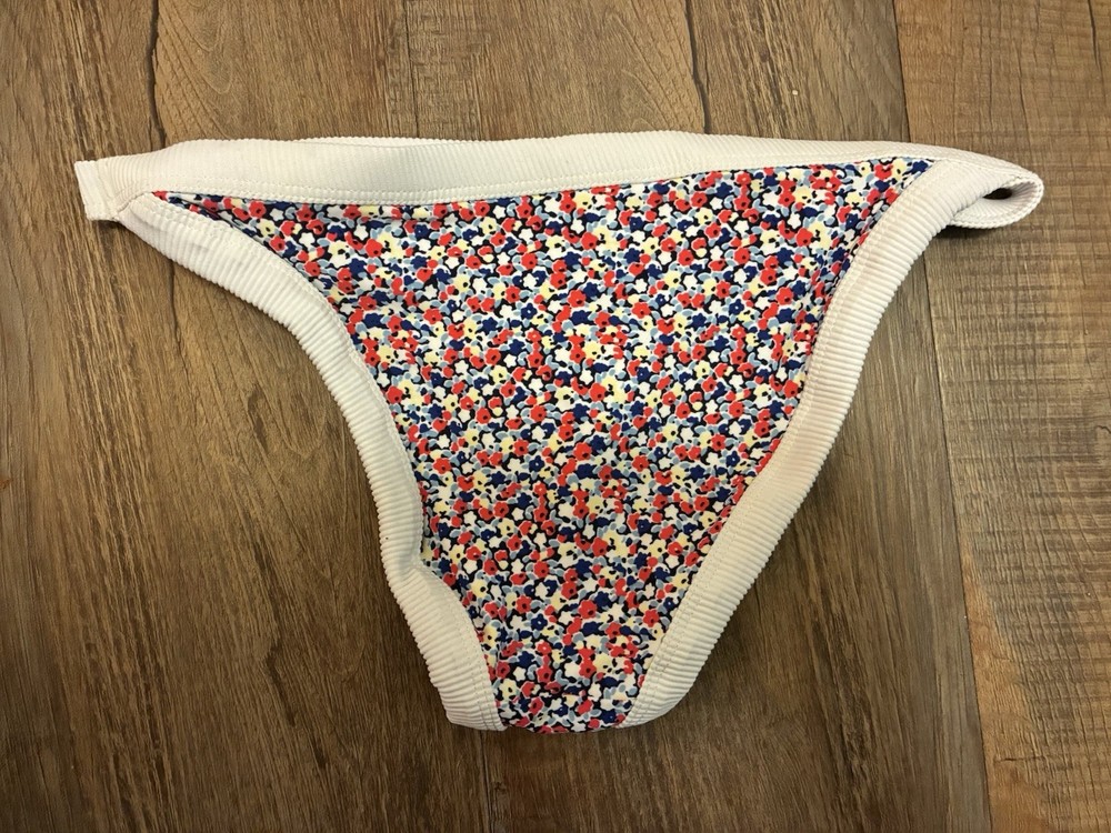aerie Women's Colorful Floral Nylon Polyester Lined Swim Bikini Bottom White XS. Condition is pre-owned. Smoke free, pet free home. Shipped via USPS Ground Advantage. In very good condition. Free of rips or stains.