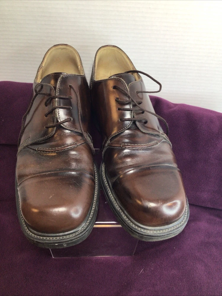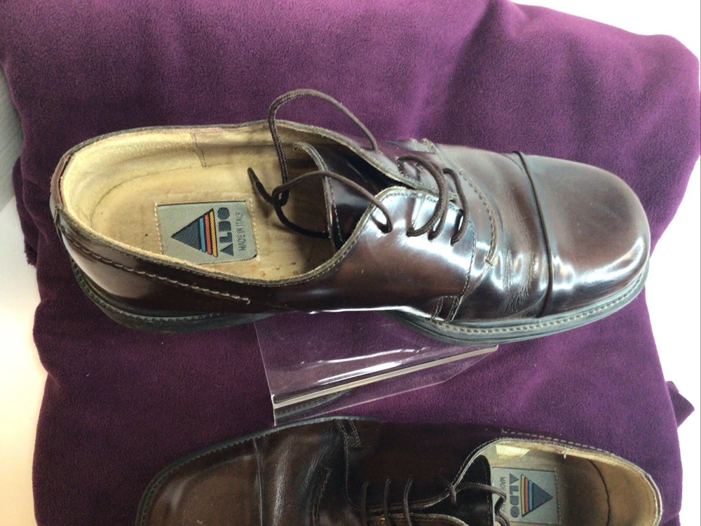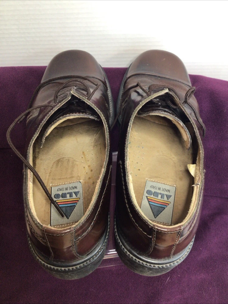 Elevate your style with these Aldo men's dress shoes in a rich brown color. Crafted with quality materials, these shoes are perfect for any formal occasion. With a comfortable fit and a size of 10, these shoes are made for men who want to look sharp and feel comfortable at the same time. The shoes feature a classic design that complements any outfit, making them a versatile addition to your wardrobe. Whether you're attending a wedding or a business meeting, these Aldo men's dress shoes are a must-have. Light wear. Please look at the pictures closely, as these are the items that you will receive.
