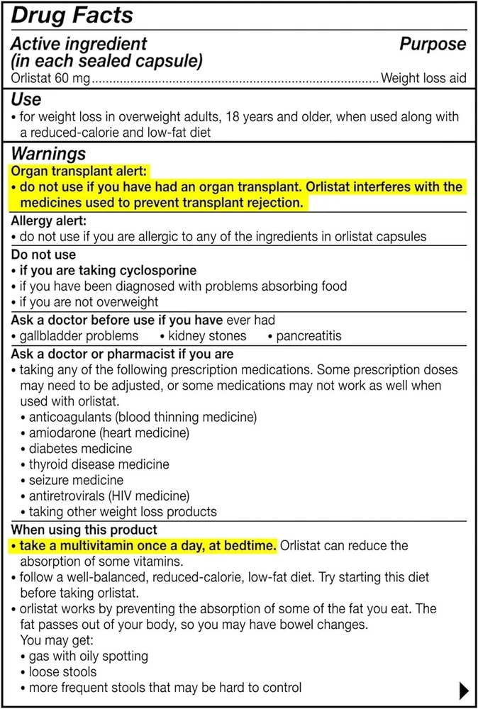 PRODUCT DERCRIPTION Orlistat is a weight loss supplement designed to aid in managing obesity. Each capsule contains 60mg of Orlistat, which works by inhibiting the absorption of dietary fats in the intestines. This helps reduce overall calorie intake, making it easier to achieve weight loss goals when combined with a balanced diet and exercise. Key Features: Dosage: 60mg per capsule Count: 170 capsules per bottle Mechanism: Blocks the absorption of fats, promoting weight loss Usage: Typically taken with meals that contain fat Diet Compatibility: Best results when paired with a low-calorie, low-fat diet Benefits: Supports weight loss efforts Can help improve cholesterol levels Encourages healthier eating habits Note: Consult a healthcare professional before starting any weight loss supplement, especially if you have underlying health conditions or are taking other medications. 4o mini