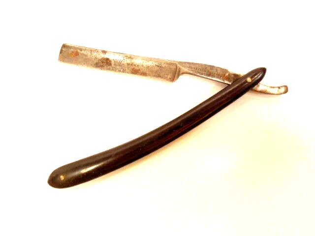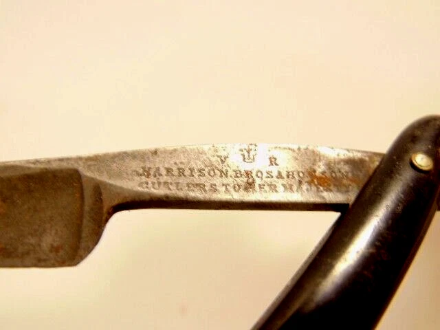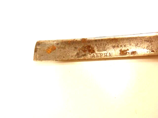 Here is an antique Harrison Bros. & Howson straight razor marked Alpha with a crown emblem on the side of the blade and Cutler to Her Majesty & crown near the rivet. The razor measures about 6 inches long. The blade s small and measures only about 5 1/4 inches long and just 1/2 inches wide. It shows some spots of corrosion, tarnish, dirt and wear from use. Please see the pictures and ask any questions. Thank you for looking. (Inv A24,402)