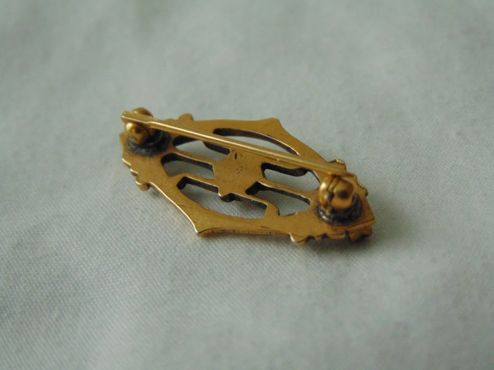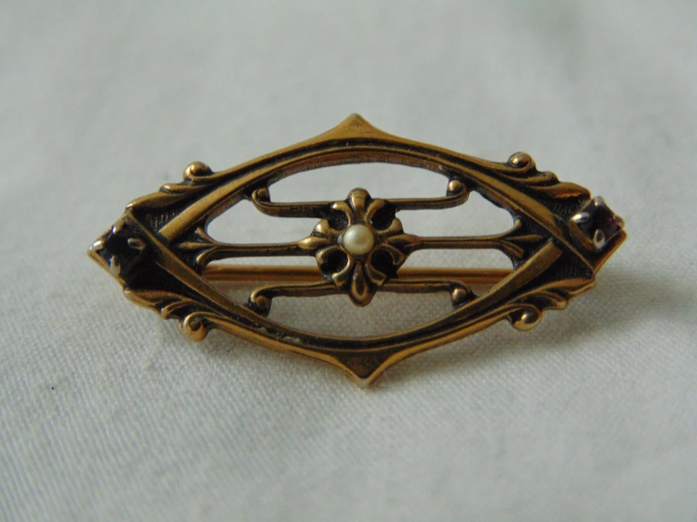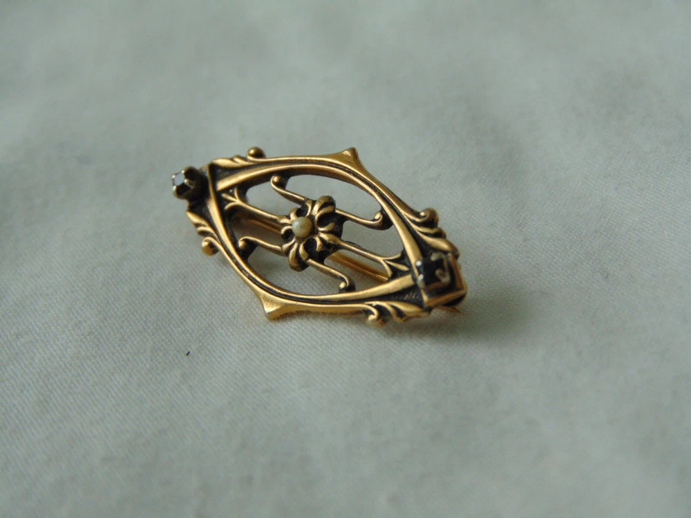 Homeantique Victorian gold filled sapphire crystals seed pearl brooch