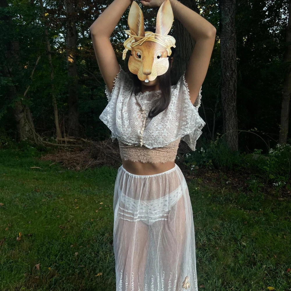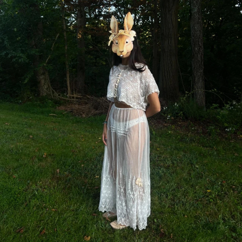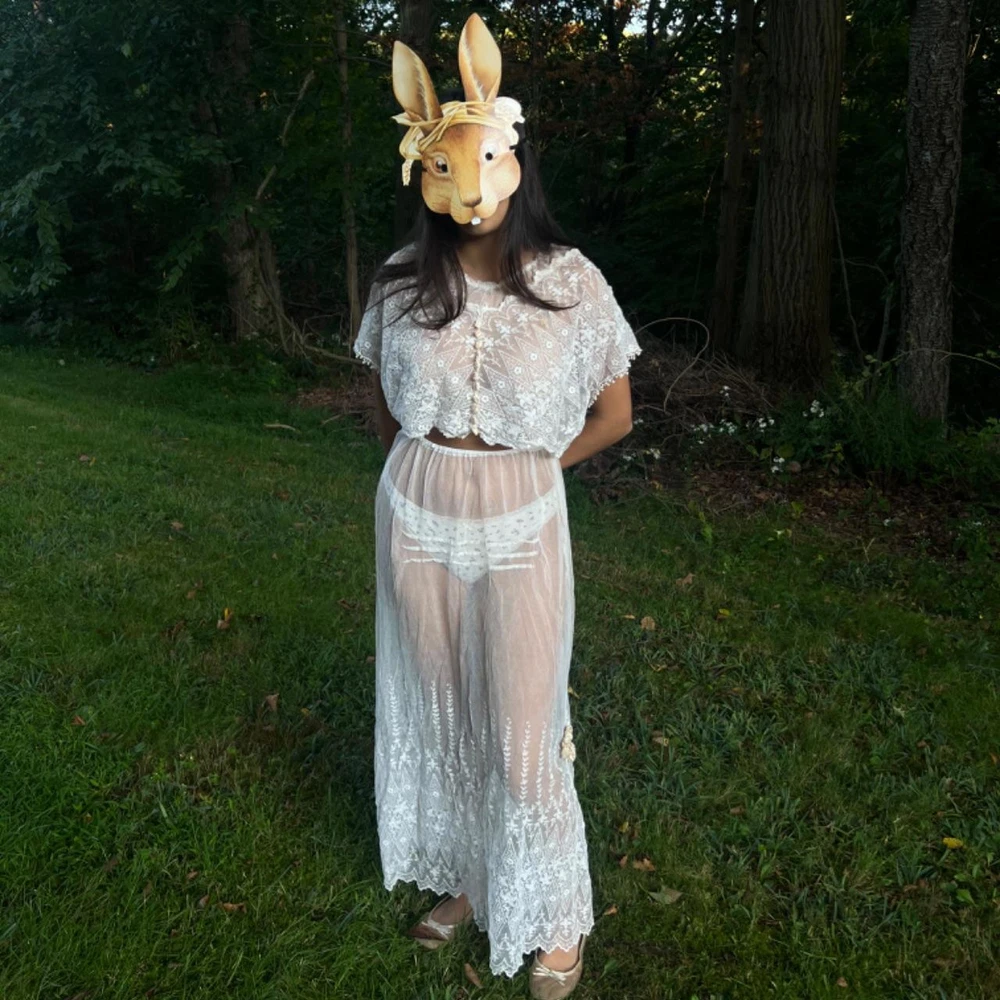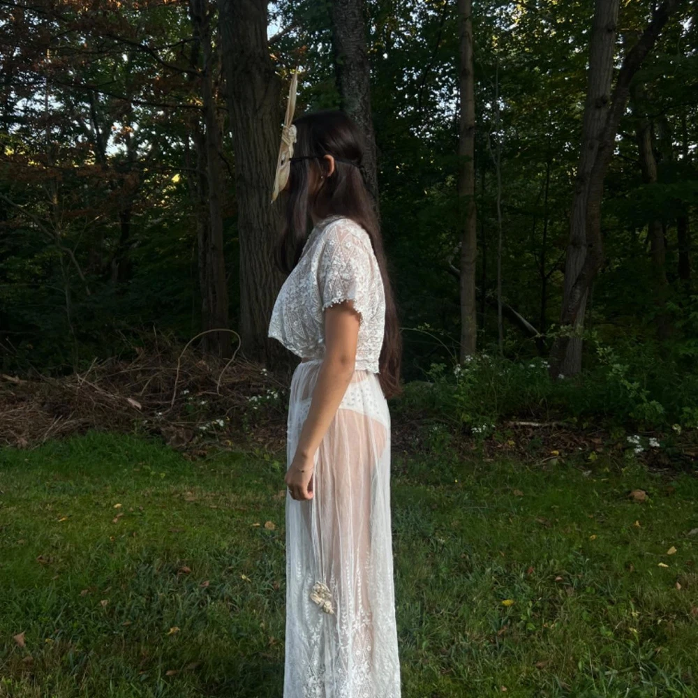 antique sheer embroidered net lace ensemble 🦢✨ intricate embroidery throughout . light , chic , feminine . wear the top either way lovely to pair with a matching lingerie set underneath ... or nothing ... silk ribbon details on both top & skirt excellent vintage condition. Recommended size: free size (added elastic waist) - best for XS-M please read vintage condition guide prior to purchasing. check out my website for more! model measurements: waist: 26.5” hips: 36” bust: 32” height: 5’2 #wedding #gown #antique #1920s #antiquedress femme feminine edwardian ballet balletcore prom ballgown magical whimsical fantasy coquette cottage wedding dress bridal vintage historic museum layered tiered fairy victorian 20s 30s 40s lace lacey 1900s 1910s set