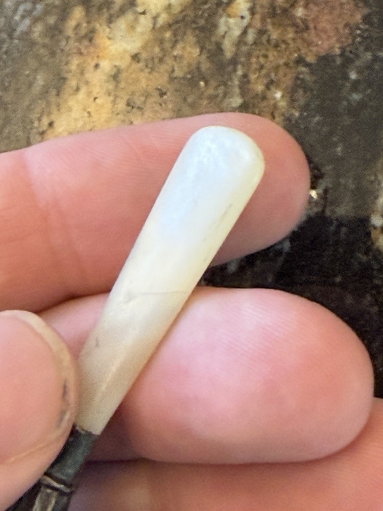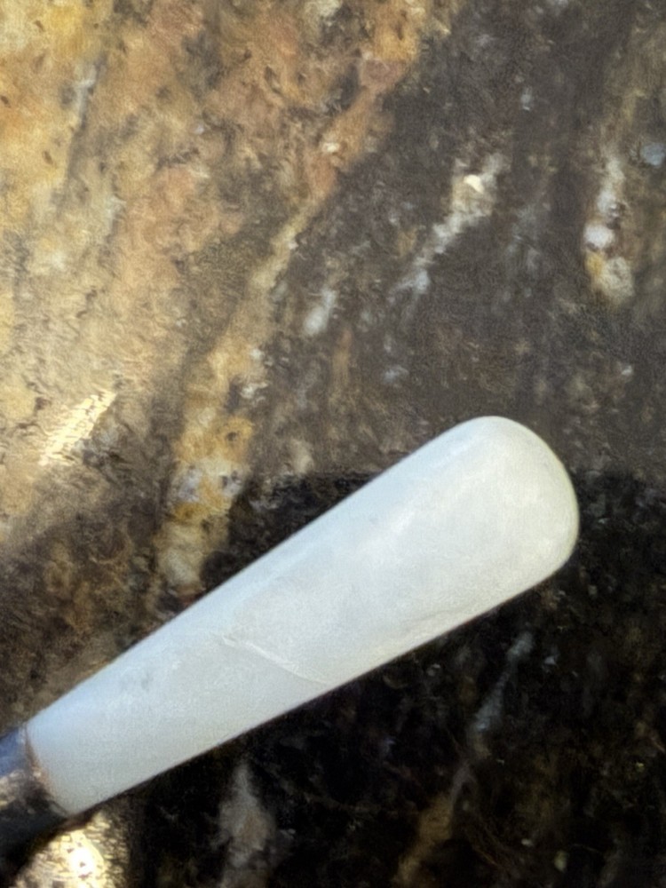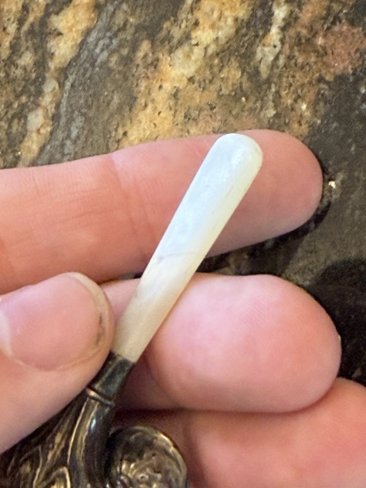 Nice shape. Has some light play wear and old small crack in the stone. Please see photos
