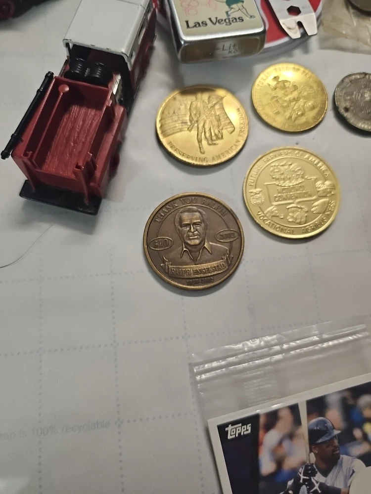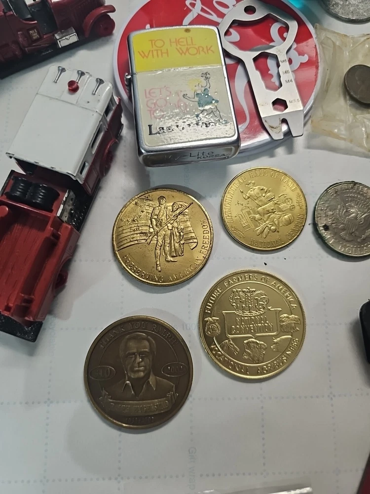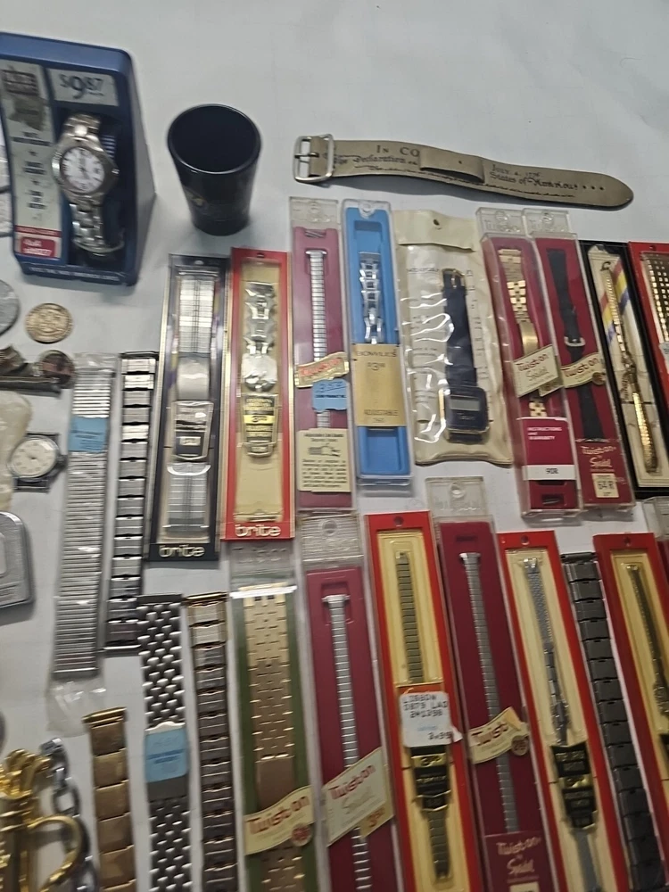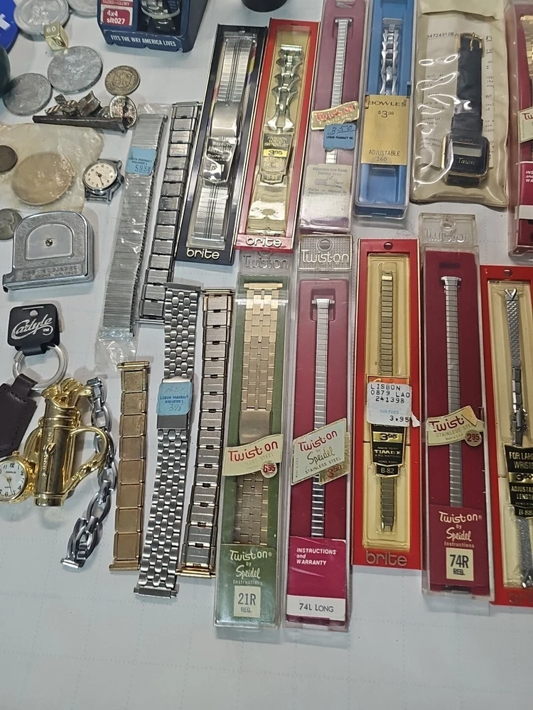 This lot includes a variety of antique and vintage items from an estate, such as coins, collectibles, and wristwatches. It is a mix of different items that have been collected over time and is perfect for someone interested in a diverse collection of unique pieces.