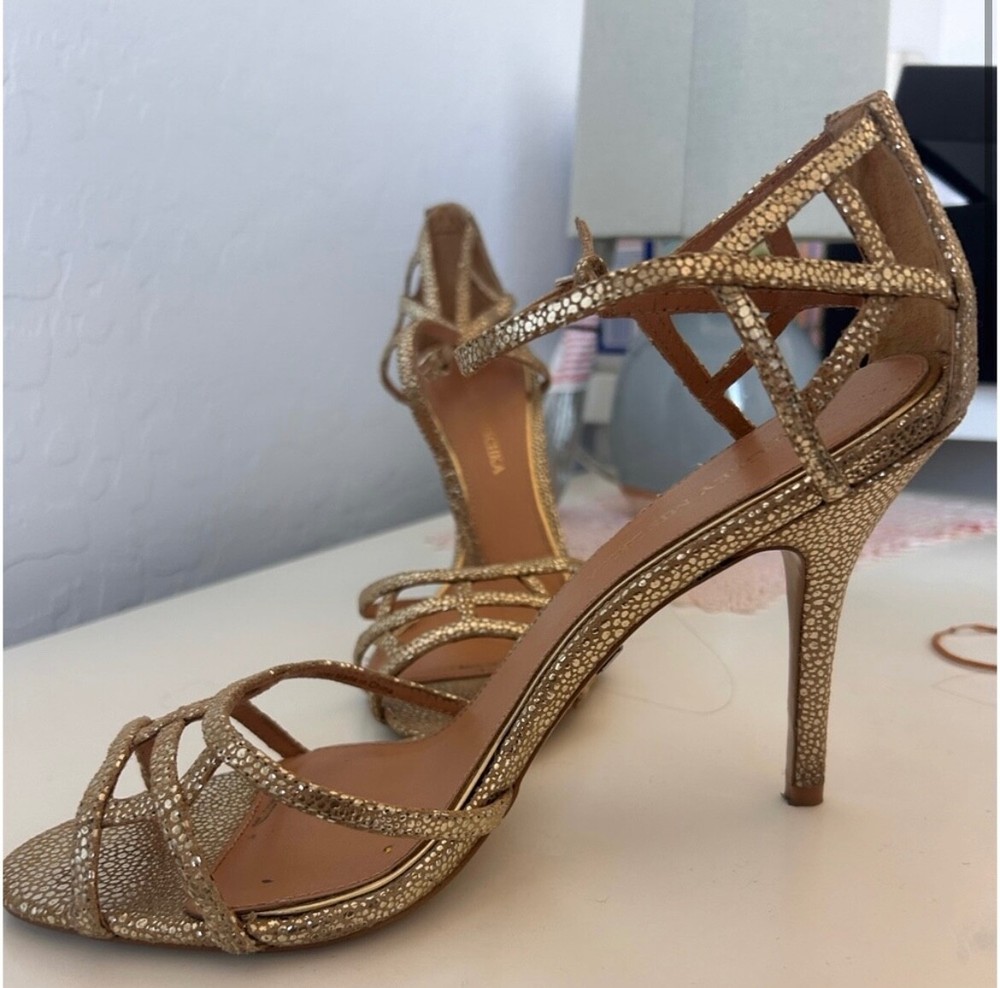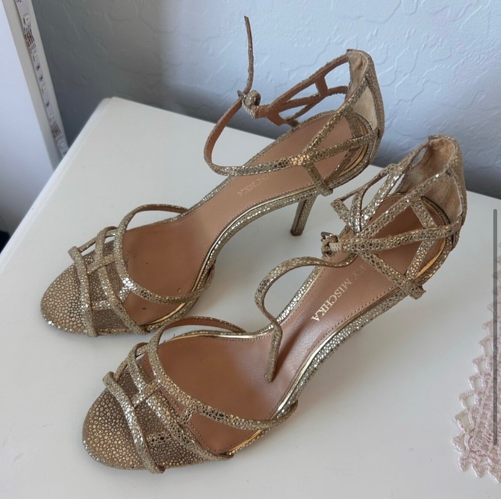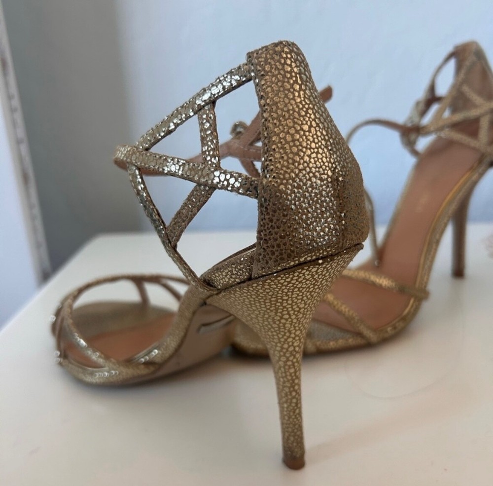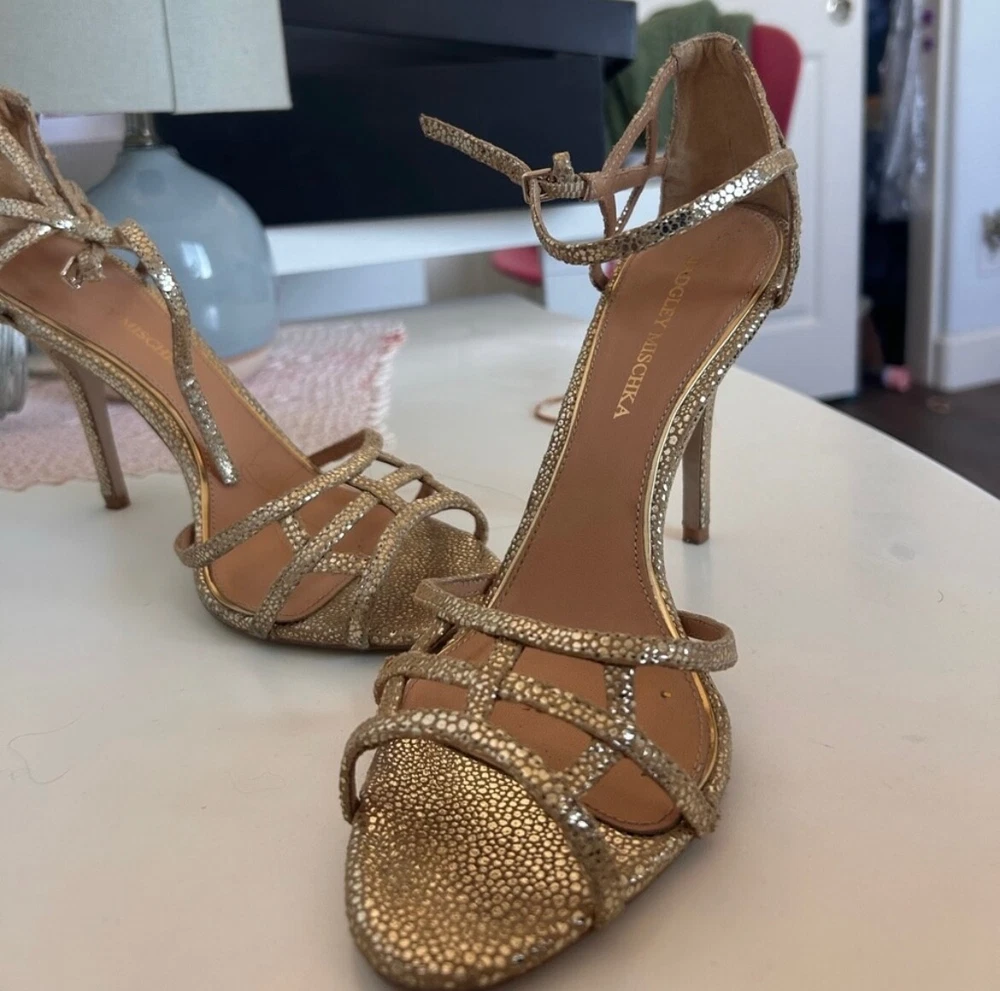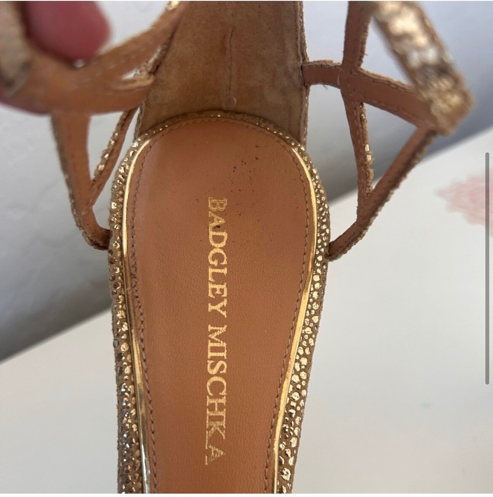 These Badgley Mischka gold heels are a stylish choice for women in size 9.5. The pumps feature a metallic design, perfect for adding a touch of glam to any outfit.