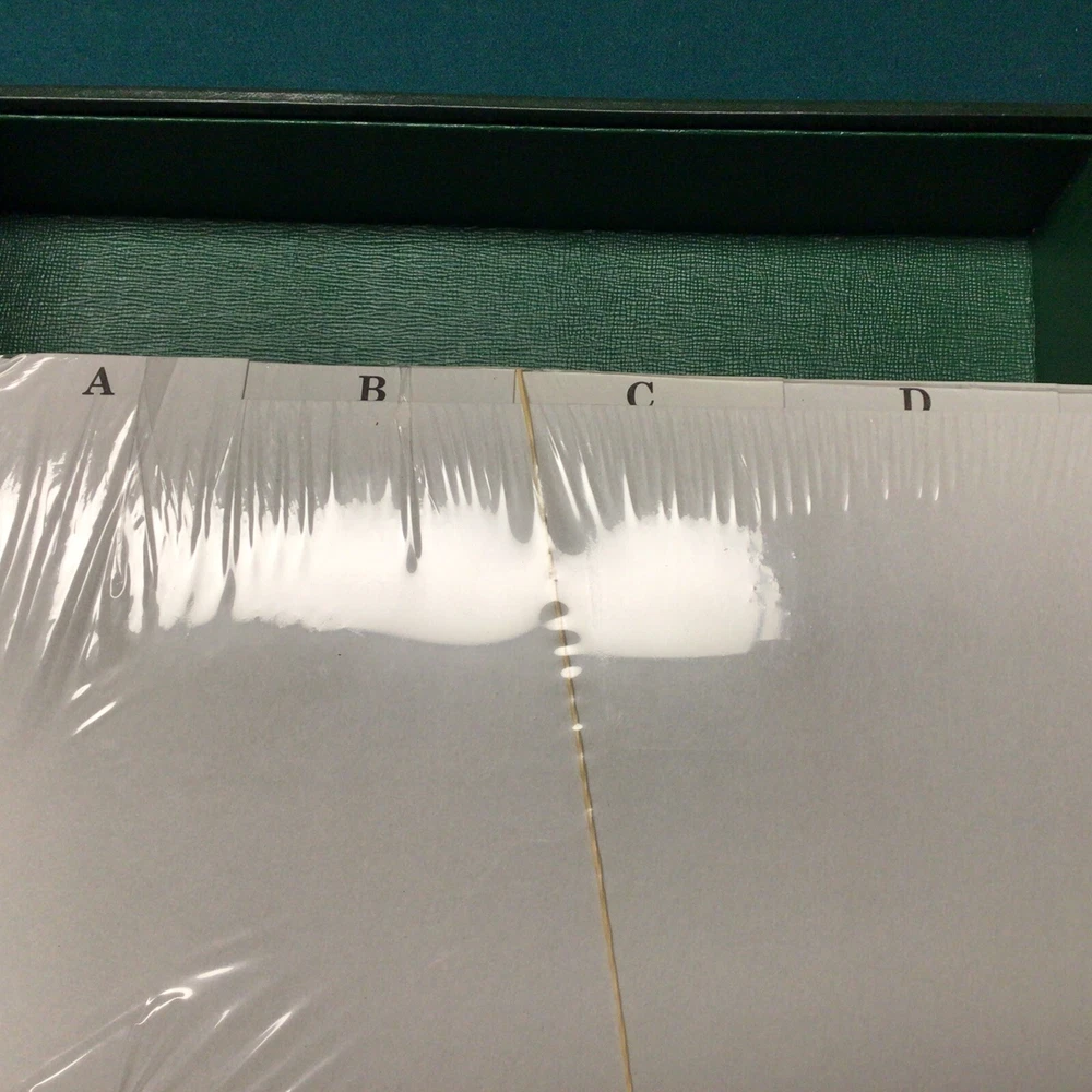 This is an unused storage box from a Franklin Mint collection. It is not absolutely perfect but close to it. It comes with a full set of alphabetical divider cards also unused. Hard to find in great shape! Check the picks, I never kid anybody.