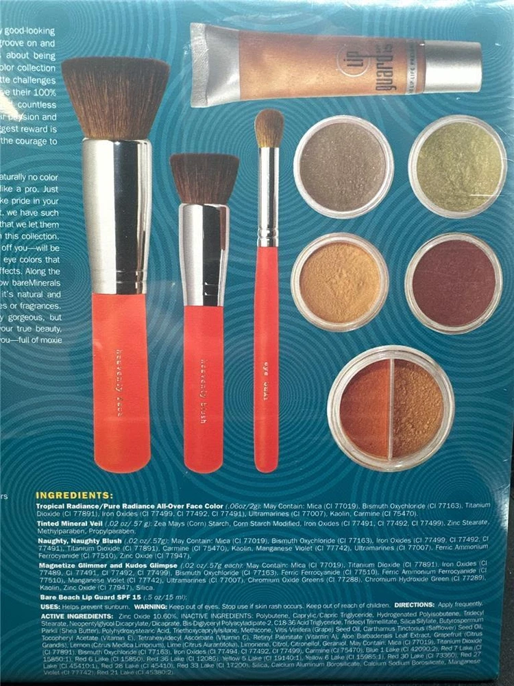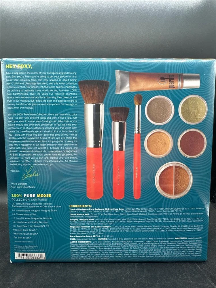 bareMinerals 100% Pure Moxie 9 Piece Color Collection Blush Eyecolor Lip Brush bareMinerals 100% Pure Moxie 9 Piece Color Collection Blush Eyecolor Lip Brush Click images to enlarge Description FOR YOUR BIDDING CONSIDERATION: bareMinerals Bare Escentuals 100% Pure Moxie 9 Piece Color Collection NEW and Sealed This gift set included: i.d. bareMinerals Dual-Sided Tropical Radiance/Pure Radiance All-Over Face Colors bareMinerals Naughty, Naughty Blush bareMinerals Magnetize Glimmer bareMinerals Kudos Glimpse Tinted Mineral Veil Bare Beach Lip Guard SPF 15 Heavenly Face Brush Heavenly Blush Brush Eye Buki Brush Check out my other listings for more bareMinerals Make Up Sets! I purchase my items from local estates, auctions, warehouse overstock and cannot confirm anything about them or if they come from smoke free/pet free homes. I try my best to represent items to the best of my knowledge. Used items are never as good as NEW. Do not purchase if you are not willing to accept less than perfect. Please read the description thoroughly and review pictures before committing to buy. Thank you! ALASKA - HAWAII - PR - APO - ADDITIONAL CHARGES MAY APPLY SHIPMENTS GO OUT MONDAY-FRIDAY WEEKEND SALES SHIP MONDAY OR TUESDAY Pictures sell! Auctiva offers Free Image Hosting and Editing. 300+ Listing Templates! Auctiva gets you noticed! The complete eBay Selling Solution. Track Page Views With Auctiva's Counter