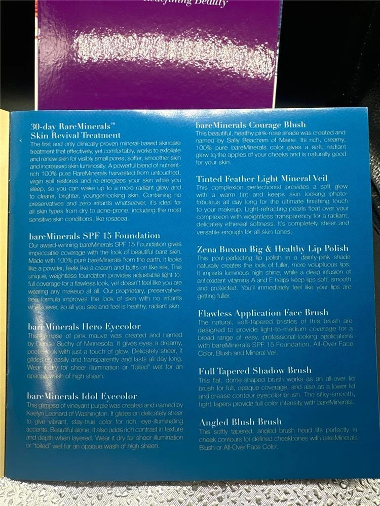 bareMinerals THE PERFECT 10 Gift Set Eyecolor Blush Veil Brushes Foundation Lip bareMinerals THE PERFECT 10 Gift Set Eyecolor Blush Veil Brushes Foundation Lip Click images to enlarge Description FOR YOUR BIDDING CONSIDERATION: bareMinerals The Perfect 10 Gift Set Collection 10 Piece Set NEW and Sealed This gift set included: 30-Day RareMinerals Skin Revival Treatment baremMinerals SPF 15 Foundation bareMinerals Hero Eyecolor bareMinerals Idol Eyecolor bareMinerals Courage Blush Tinted Feather Light Mineral Veil Zena Boxim Big & Healthy Lip Polish Flawless Application Face Brush Full Tapered Shadow Brush Angeled Blush Brush See pictures for sizes of containers. Check out my other listings for more bareMinerals Make Up Sets! I purchase my items from local estates, auctions, warehouse overstock and cannot confirm anything about them or if they come from smoke free/pet free homes. I try my best to represent items to the best of my knowledge. Used items are never as good as NEW. Do not purchase if you are not willing to accept less than perfect. Please read the description thoroughly and review pictures before committing to buy. Thank you! ALASKA - HAWAII - PR - APO - ADDITIONAL CHARGES MAY APPLY SHIPMENTS GO OUT MONDAY-FRIDAY WEEKEND SALES SHIP MONDAY OR TUESDAY Get images that make Supersized seem small. Showcase your items with Auctiva's Listing Templates! THE simple solution for eBay sellers. Track Page Views With Auctiva's Counter