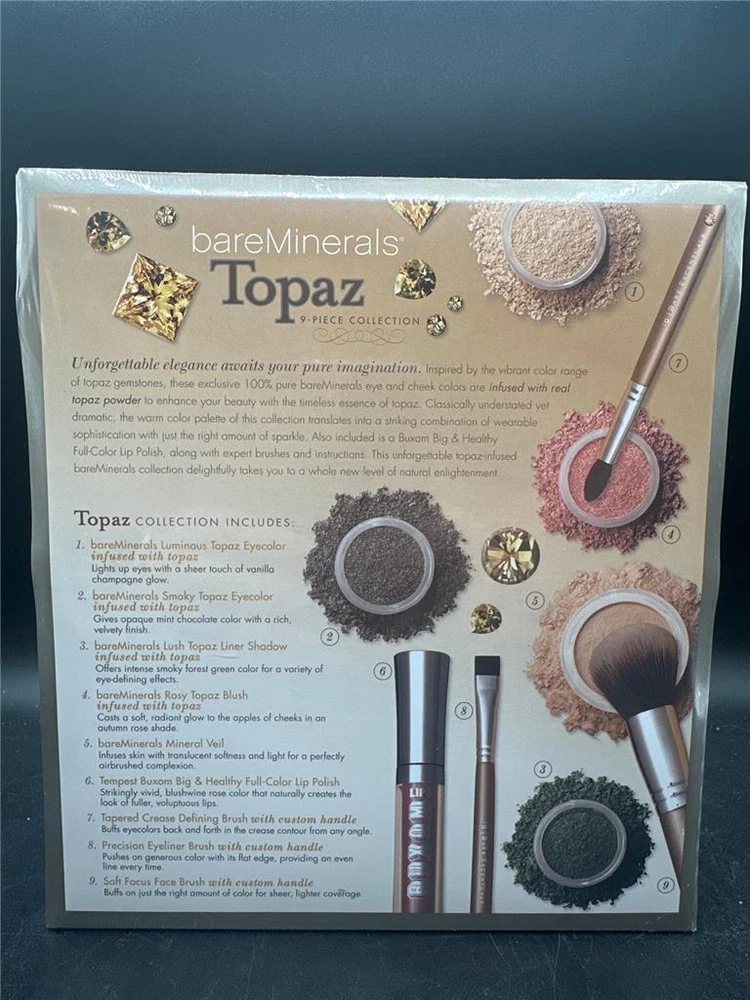 bareMinerals TOPAZ 9 Piece Collection Eyecolor Liner Shadow Blush Brushes Veil bareMinerals TOPAZ 9 Piece Collection Eyecolor Liner Shadow Blush Brushes Veil Click images to enlarge Description FOR YOUR BIDDING CONSIDERATION: bareMinerals TOPAZ Infused 9 Piece Collection Limited Edition NEW and Sealed This gift set included: bareMinerals Luminous Topaz Eyecolor bareMinerals Smokey Topaz Eyecolor bareMinerals Lush Topaz Liner Shadow bareMinerals Rosy Topaz Blush bareMinerals Mineral Veil Tempest Buxom Big & Healthy Full-Color Lip Polish Tapered Crease Defining Brush with Custom Handle Precision Eyeliner Brush with Custom Handle Soft Focus Brush with Custom Handle Check out my other listings for more bareMinerals Make Up Sets! I purchase my items from local estates, auctions, warehouse overstock and cannot confirm anything about them or if they come from smoke free/pet free homes. I try my best to represent items to the best of my knowledge. Used items are never as good as NEW. Do not purchase if you are not willing to accept less than perfect. Please read the description thoroughly and review pictures before committing to buy. Thank you! ALASKA - HAWAII - PR - APO - ADDITIONAL CHARGES MAY APPLY SHIPMENTS GO OUT MONDAY-FRIDAY WEEKEND SALES SHIP MONDAY OR TUESDAY Pictures sell! Auctiva offers Free Image Hosting and Editing. 300+ Listing Templates! Auctiva gets you noticed! The complete eBay Selling Solution. Track Page Views With Auctiva's Counter