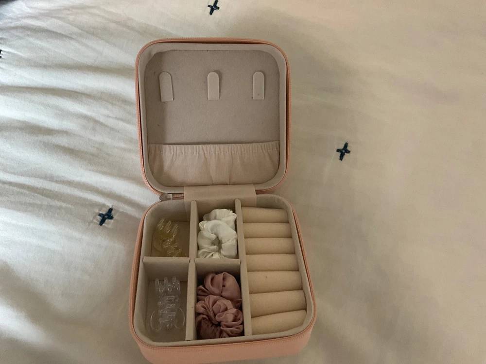 If you’re looking for the perfect gift, then you came to the right place. This birthday/gift bag includes 11 items such as a gold sleep mask, Bath and Bodyworks, black cherry Merlot hand sanitizer, two packs of one spring eye patches, a burts bees sheet mask, a miniature white brush, anihana shower steamer in the scent floral fantasy, gold nail file and a jewelry/hair box that is filled with four miniature scrunchies, and two miniature clips.