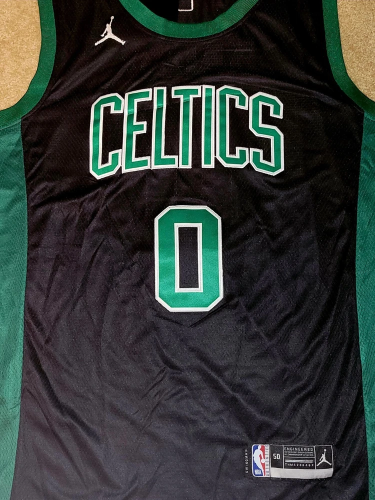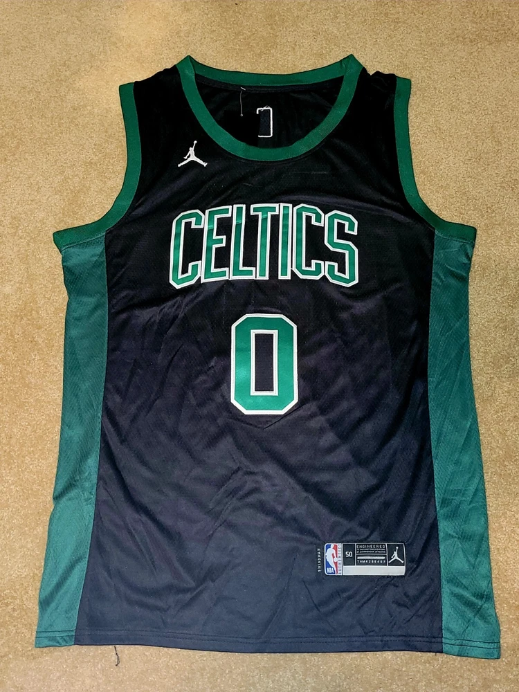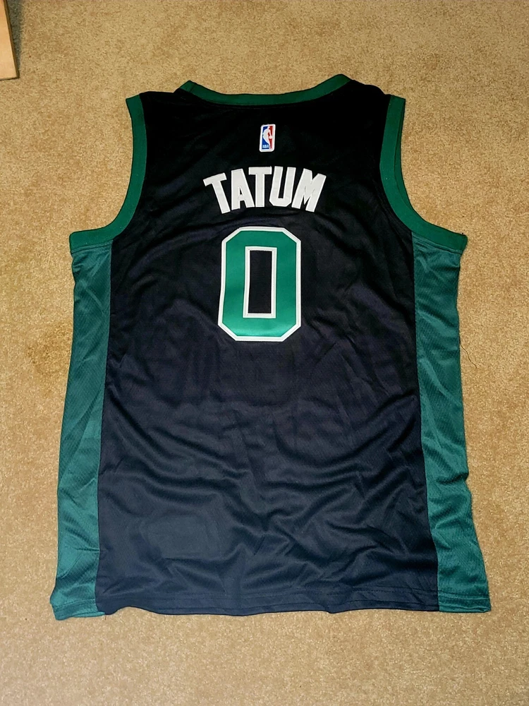 Get ready to cheer on the Boston Celtics with this Jayson Tatum replica jersey. It features the iconic black design with Tatum's name and number on the back. Made for men, this jersey is perfect for any fan of the National Basketball Association and the Boston Celtics. Represent your team and favorite player with this high-quality jersey, perfect for regular season games and beyond. The jersey is made from durable materials and includes all the necessary aspects such as brand, size, and color to ensure it meets your needs. Show off your love for the game with this Boston Celtics Jayson Tatum replica jersey.
