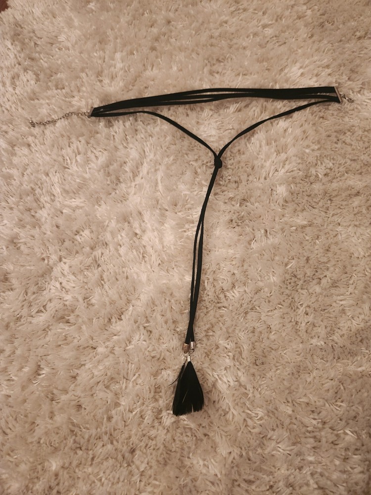 The black velvet choker necklace with two feathers is a stylish accessory crafted from luxurious velvet material. The choker style gives it a trendy and chic look, perfect for adding a touch of elegance to any outfit. The inclusion of feathers adds a unique and edgy element to the design, making it a fashionable statement piece for those who want to make a statement with their jewelry.