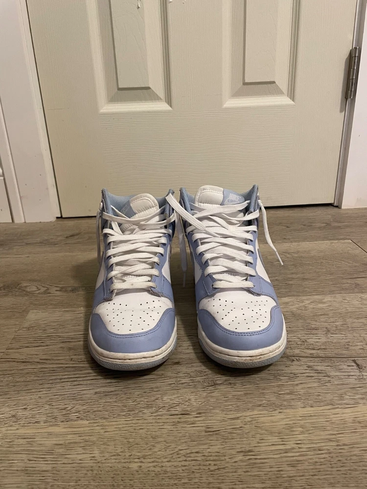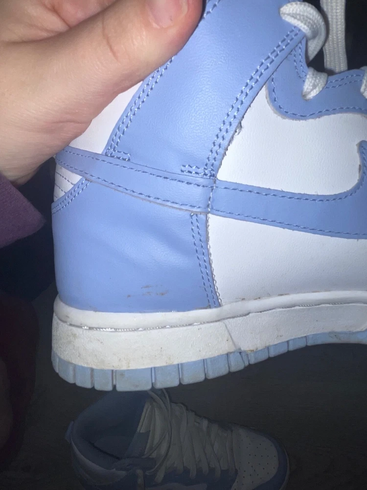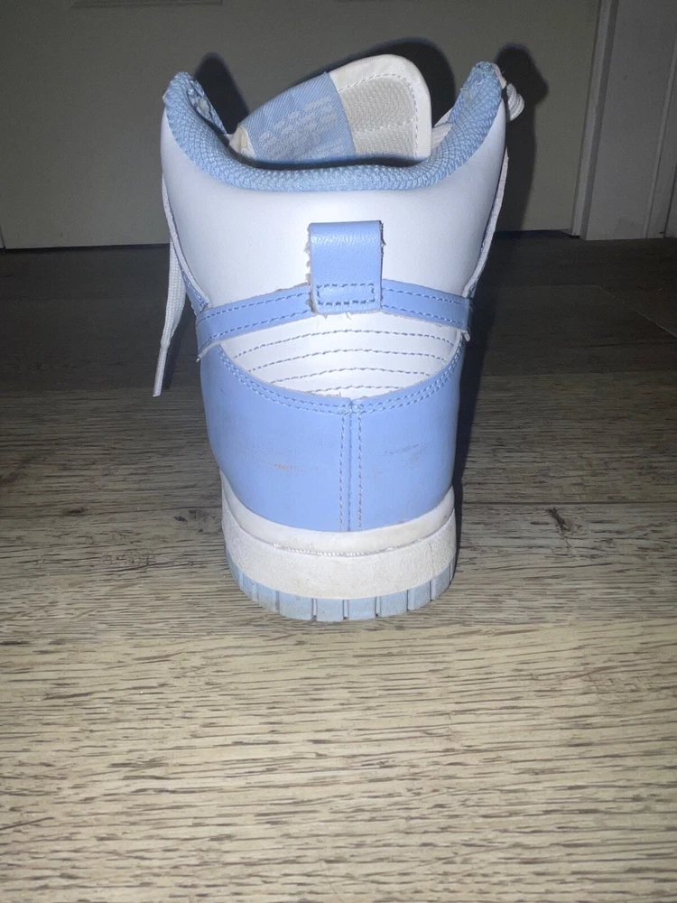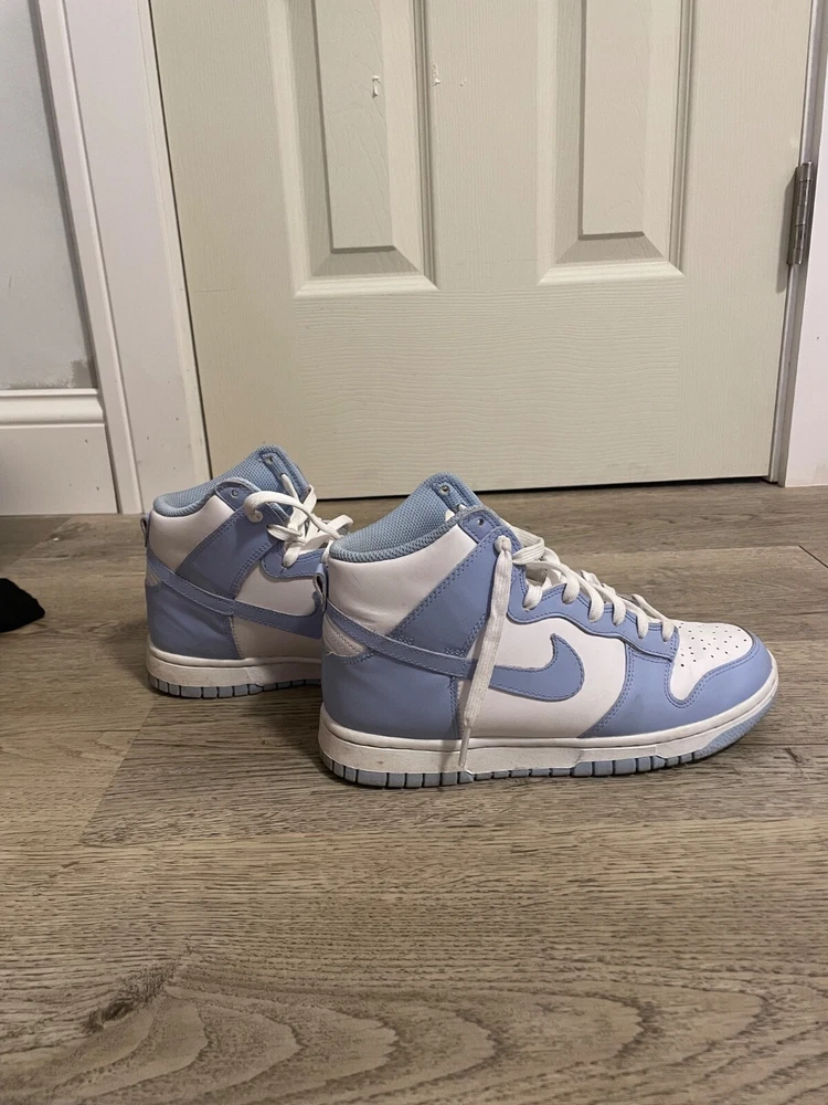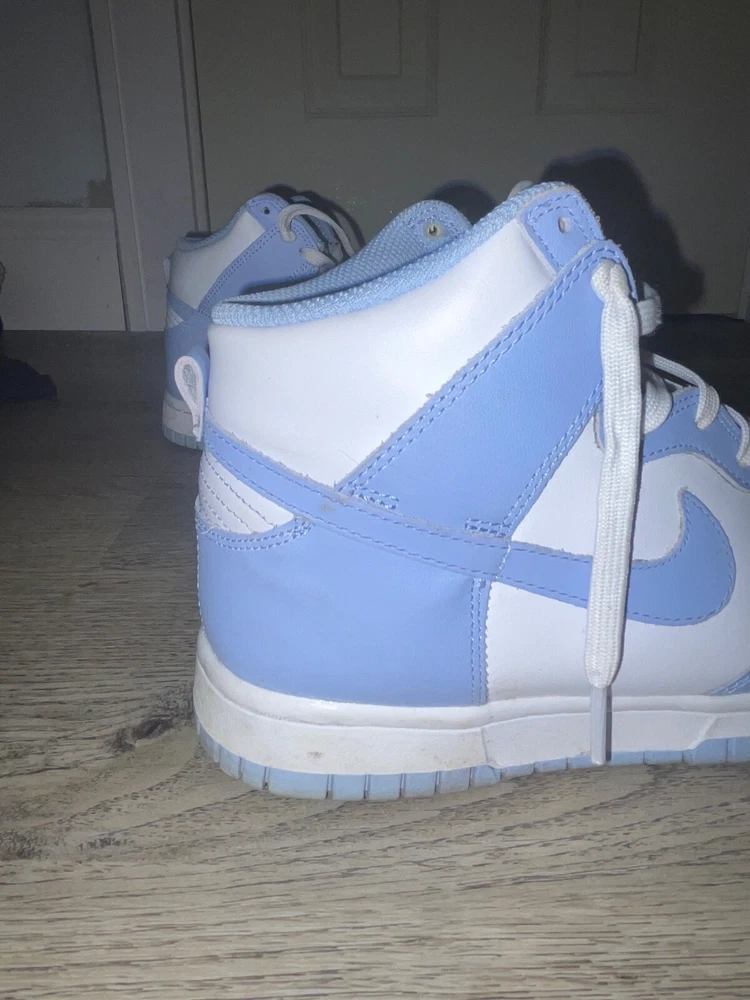 Elevate your sneaker game with these blue Nike Dunks for women. These athletic shoes feature a sleek design that combines style and comfort. The blue colorway adds a pop of color to any outfit, making them perfect for everyday wear.Crafted with quality materials, these Nike Dunks are durable and long-lasting. They are designed to provide support and cushioning, making them ideal for intense workouts or casual wear. With a US shoe size of 7, these sneakers are perfect for women who want to look and feel great while on the go. Worn a few times, some blemishes as seen in photos