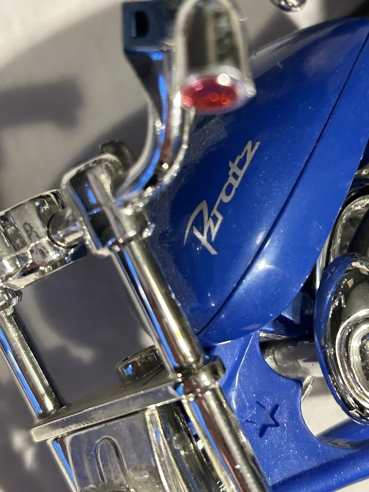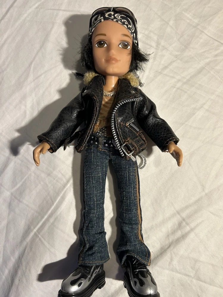 The "Bratz Boyz Motorcycle and Cade Doll" is a vintage Bratz doll playset featuring a doll and a motorcycle. The doll is made of cloth and plastic materials and is part of the Bratz franchise. The set includes a Bratz Boyz doll named Cade and a motorcycle, perfect for imaginative play and collecting. They are from the early 2000’s. So please expect wear