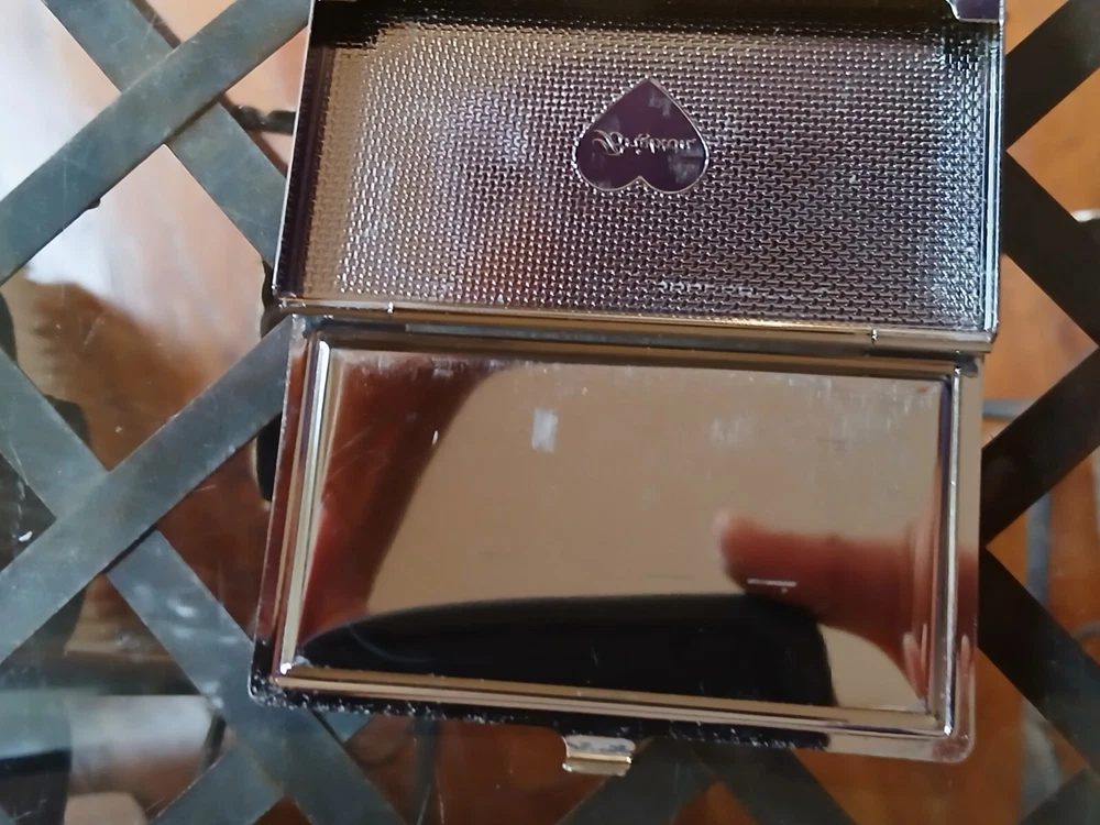 This brighton Serendipity business card holder case is a perfect addition to your office supplies. The lattice metal design adds a touch of elegance to your desk and the compact size is perfect for storing your business cards. The brand Brighton is known for its quality and this holder is no exception. It is specifically designed to hold business cards and will make a great addition to any office. A few scratches and smudges as pictured in picture # 3