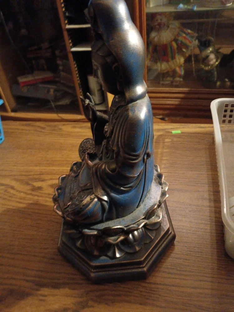 Look at pics good for description what you see is what you're buying I listed as wood cause the bottom is wood but I don't know if whole thing Is wood 13 in tall