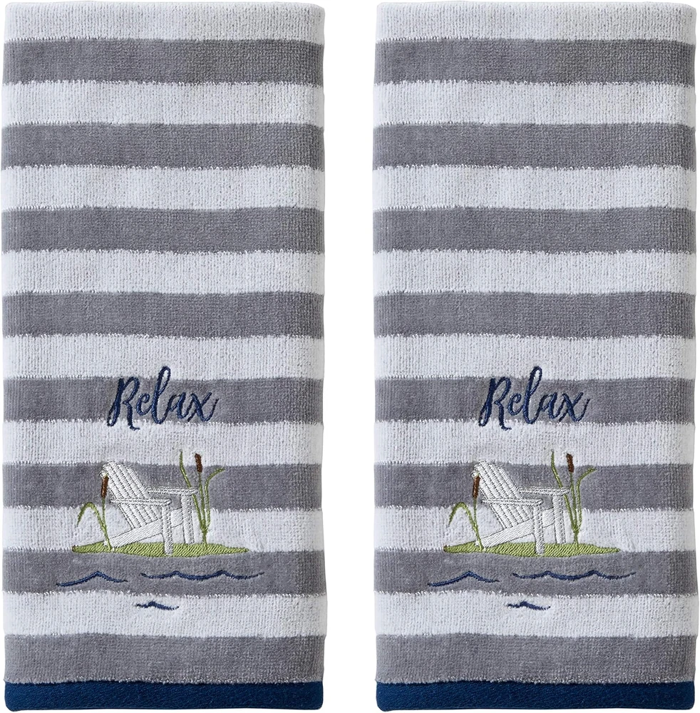 by Relax Chair Hand Towel (2-Pack), Multi 100% Cotton Includes 2 hand towels Soft cotton velour with decorative embroidery Great for everyday use or at a lake or beachside home 100% Cotton 16" x 25" Sit back and "Relax". Made of soft cotton velour, this hand towel features grey and white stripes with embroidery of an Adirondack chair near a body of water. Great for use in warm-weather seasons, for use in a lake/beach house, or even just everyday at home. Shop coordinating items to complete the look. SKL HOME by Saturday Knight Ltd. brings personality, fun and flair to the most intimate spaces in your home with products ranging from bath accessories and shower curtains, to towels, curtains and beyond. Whether your style is upbeat and modern, or classic and cozy, SKL HOME provides a look to compliment almost any décor. Combining 40+ years’ experience, global design inspiration and premium fabrications, SKL HOME continues to lead the way in home accessories. Item model number W4209500830203 Style Relax Chair Number of Items 2 Assembly required No Pattern Striped, Embroidered Country of Origin China Warranty Description No warranty Unit Count 2.0 Count Batteries required No Product Dimensions 25"L x 16"W Material Cotton Towel form type Hand Towel Age Range (Description) Adult Model Name Relax Chair Included Components 2 hand towels Customer Package Type Standard Packaging Fabric Type 100% Cotton Item Weight 8.4 ounces Size 16" x 25" Special Feature Lightweight Color Relax Chair Fabric Weight 450 Grams per Square Meter Shape Rectangular Product Care Instructions Machine Wash Number of pieces 2 16.0 "w x 25.0 "w. Weight: 450.0 grams Shipping from the USA All of our products are shipped from the USA, ensuring quick delivery to your destination. Payment We offer the following payment methods: PayPal, credit card, bank transfer, and eBay's secure payment system. Free Shipping & Free Returns Shipping within the USA is FREE. Additionally, any return is absolutely free for you. Risk-Free Purchase You have the option to return an item within 30 days without any justification. We cover the return shipping costs! Fast Shipping We ship immediately upon receipt of payment. Generally, the package is delivered within 2-3 days in the USA. If it takes longer, we will contact you. Quality and Costs Made in Europe, USA, China No customs fees or additional charges Total satisfaction guarantee Invoice with declared VAT available upon request in .pdf format Feedback Your feedback is very important to us. After you pay for your purchase, you will automatically receive positive feedback from us.