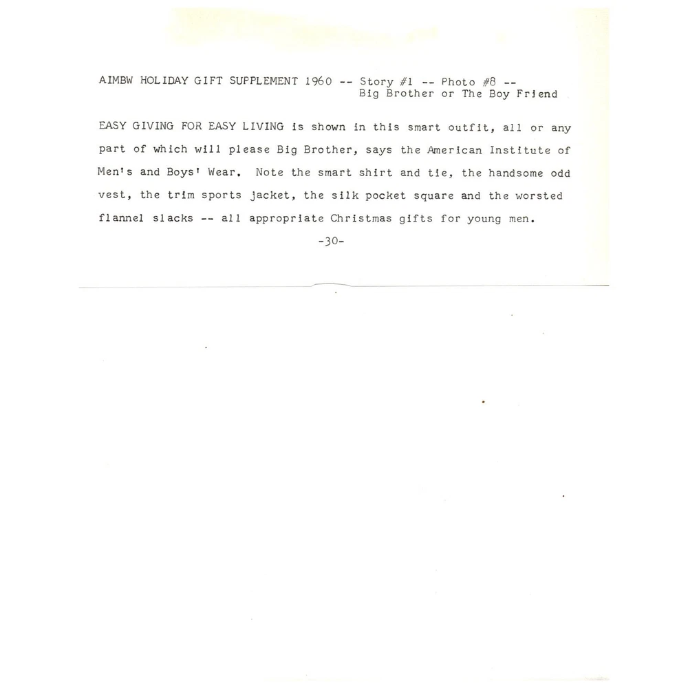 Measures about 8x10". See pics for condition. c1960 Press Photo Christmas Gifts for Young Men Big Brother or the Boyfriend AE1