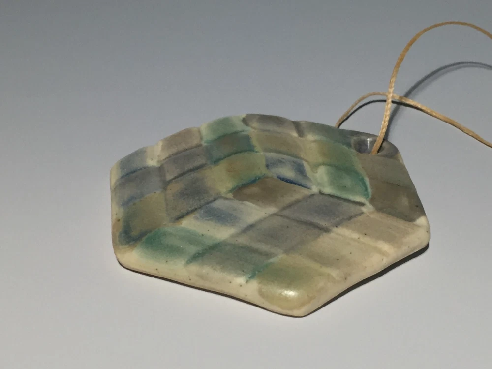 Handmade pottery piece fired to cone 6 with food safe glazes in painterly fashion. This piece was made by me, Curtis Fontaine, an apprentice of Toshiko Takaezu for two years. Most of my work is inspired by time with Toshiko and her spirit towards being an artist. At www.CurtisFontaine.com one can see more of my work. This piece is part of a series of my first cone 6 venture. With lots of experience making these glazes I am finally able to create and combine for new finishes. Unsigned. But can come with signed hand-painted card on request. This cube ornament is 2.75 in. around.