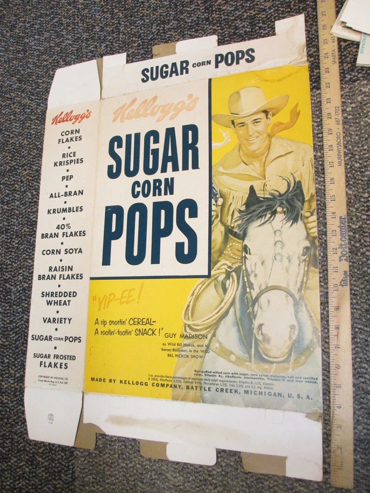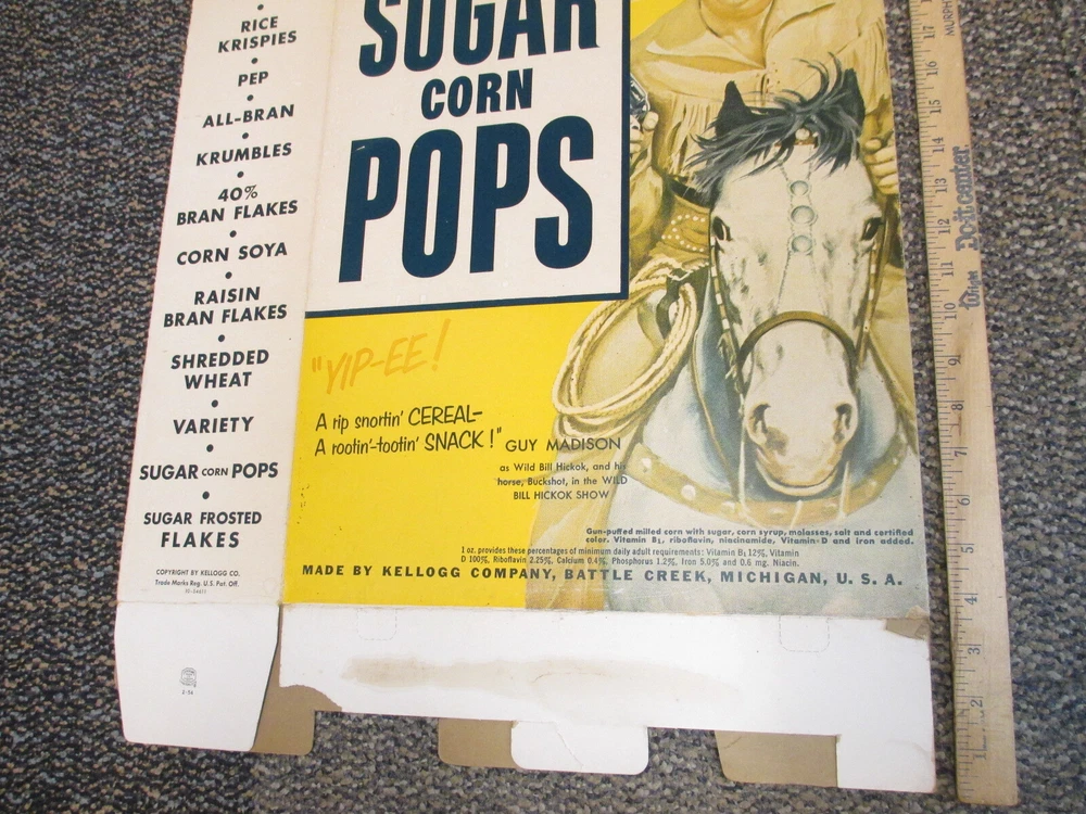 ITEM DESCRIPTION cereal box Wild Bill Hickok Guy Madison 1950s TV western cowboy store display $199.99 while this large 2 sided store display box is not as rare as one might think, this one happens to be in much better shape than ones usually found. Often these are found badly faded but this one has only minor fading to the Hickok side on the upper part but overall still has nice colors. Some minor stains, solid very good or better condition. Will be shipped flat. OFFERS ---I list 20,000+ items a month on EBAY. It is easier to put Best Offer on everything but because I lose 15% to EBAY fees no matter what, I may not be willing to take offers on everything I have listed. COMBINED SHIPPING ? YES...I can do this but ONLY If you follow the below instructions. To be clear, "combined shipping" is when you buy 3 items, for example, each with a shipping charge of $8, but since I can ship all 3 in the same box, you get charged $10-12 instead of $24. I cannot "combine shipping" after you have already paid. 1) DO NOT USE the cel phone app ! If you do, EBAY will force immediate payment and charge you full shipping on each item. I will not refund your money if this happens. 2) You must log into EBAY with a browser (Chrome, Safari etc) on your phone, computer or laptop to avoid this. 3) Put all items in your Cart and then, while in your Cart, click the "Request Total" link. "Request Total" will not be visible if you click "Checkout" under your Cart icon. You must click "View Cart" under your Cart icon. The URL should say cart.ebay.com Because EBAY and PAYPAL have made partial refunds so complicated, I will no longer be refunding $ if you do not follow these instructions. MY PHOTOS - If more than 1 item is shown in a photo--- then items are in SEPARATE listings unless otherwise stated ! Read description! PAYMENT-General Info PAYMENTS- USA Various payment options will show during checkout. Contact me if you need another payment option. EBAY is charging sales tax. Sellers have no control over that. PAYMENT-FOREIGN ORDERS Various payment options will show during checkout. Contact me if you need another payment option. SHIPPING COST ? .... see "SHIPPING COSTS : Shipping-Foreign" (shown below). CUSTOMS CHARGES -- your country may charge you customs fees before you can receive the package. This is not my responsibility NOR is it part of my shipping charge. It is a fee charged by the country you live in. SHIPPING COSTS SHIPPING-USA FIXED SHIPPING RATE = actual shipping cost & insurance & small handling fee ($2 or less). West Coast may be significantly higher on larger or heavier items. FYI here is what the US Post Office currently charges : SHIPPING-FOREIGN For UK, Canada,and Australia , PLEASE check with me first to make sure shipping charges EBAY has listed are correct! In the last few years, there have been HUGE increases in shipping cost outside the USA. The shipping cost listed is usually for FIRST CLASS shipping. The USPS will only insure Priority and Express shipments. ******There is a $2-$5 handling fee for foreign orders. ========================================================= Offered by DAVID WELCH ------ author of COLLECTING PEZ 1995 and Pictorial Guide to Plastic Candy Dispensers 1991. I have been a full time antique and collectibles dealer since 1989 and have been collecting since the early 1970s. I have been on EBAY since 1997. If you have questions about any negatives I have received, feel free to ask. THANK YOU TO THE PATIENT AND REALISTIC PEOPLE WHO MAKE 98% of EBAY DEALINGS A PLEASURE. I have been on EBAY since 1997 and this company's ability to make simple things needlessly difficult is unmatched by anything I have experienced elsewhere. ===================================================================== Powered by SixBit's eCommerce Solution