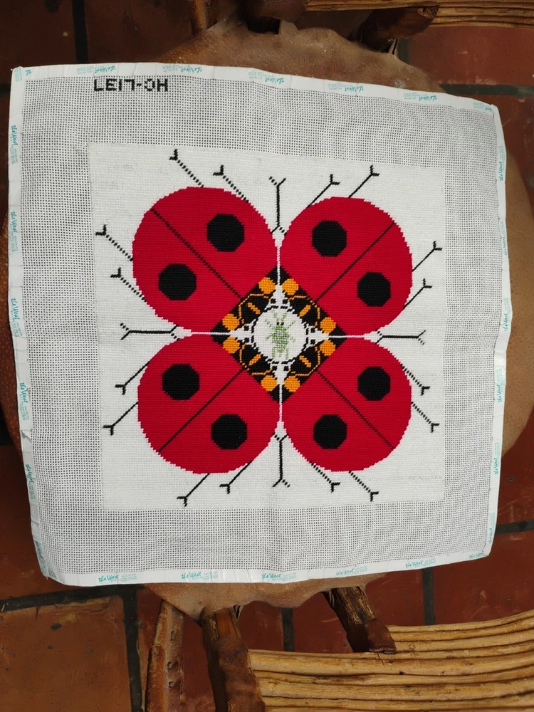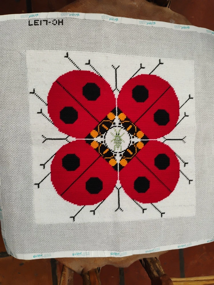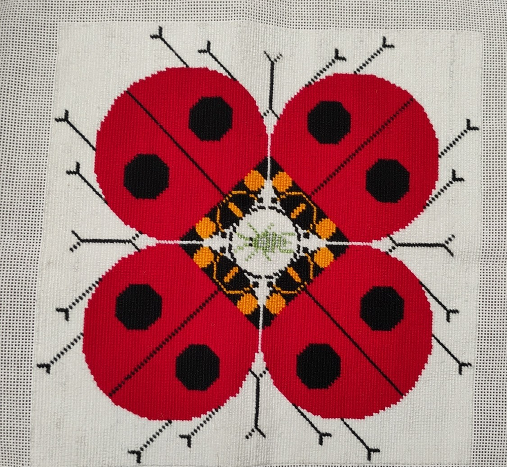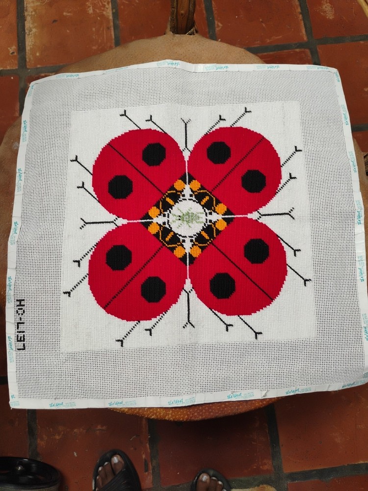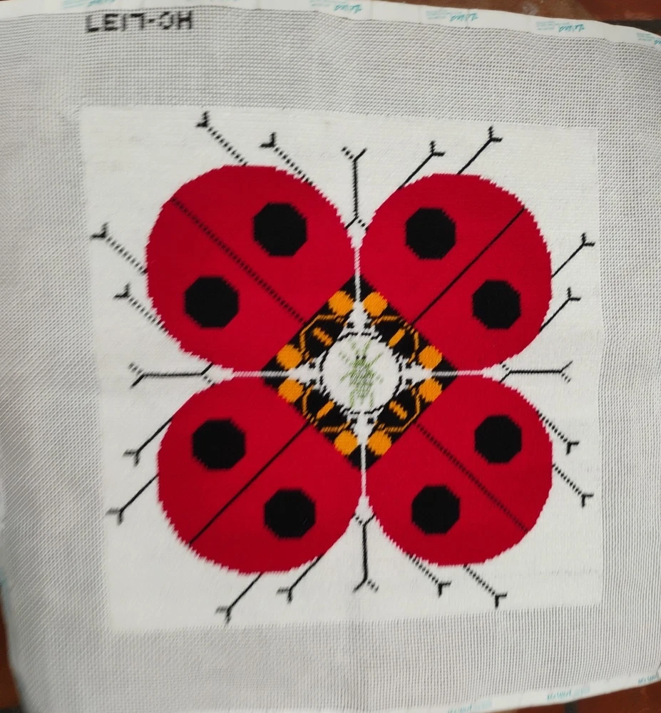 charlie Harper lady bug knitted needle point 15 \1/2 inches square shape