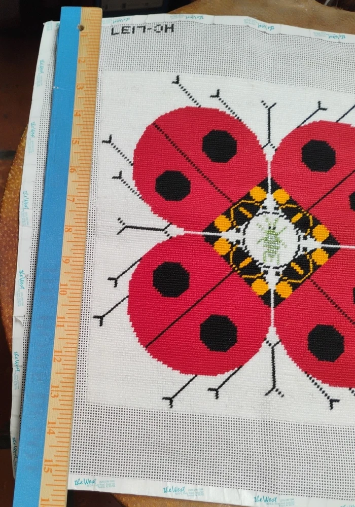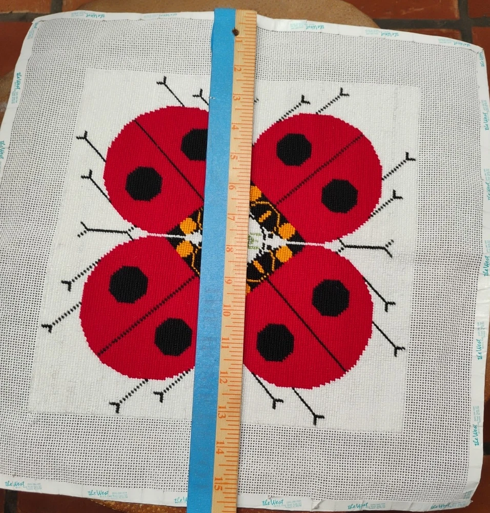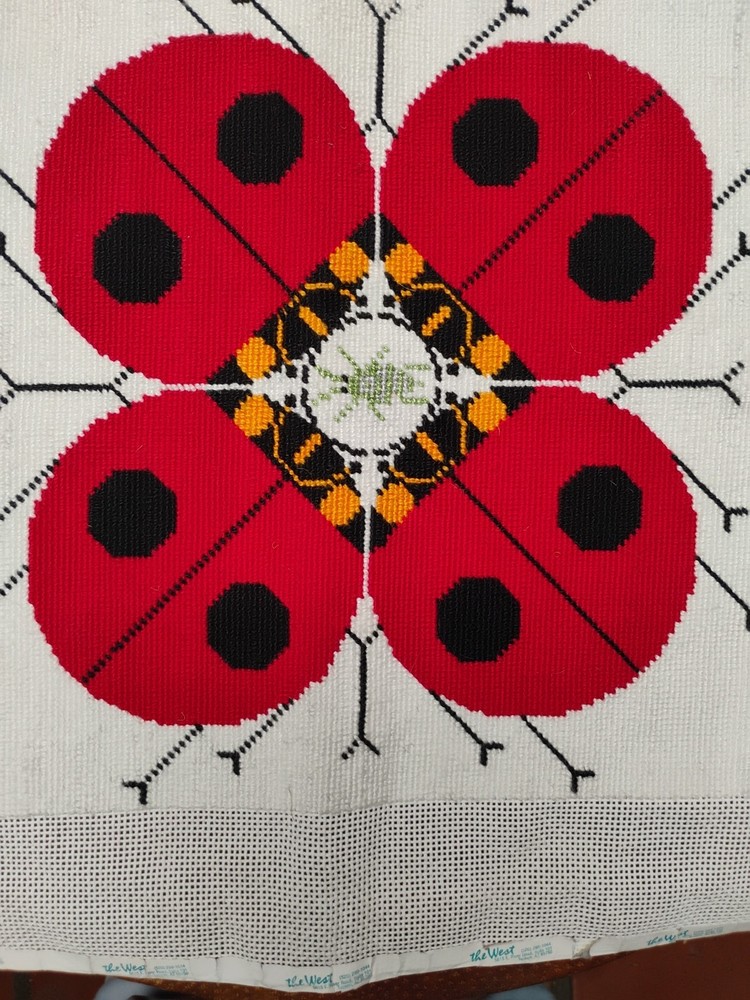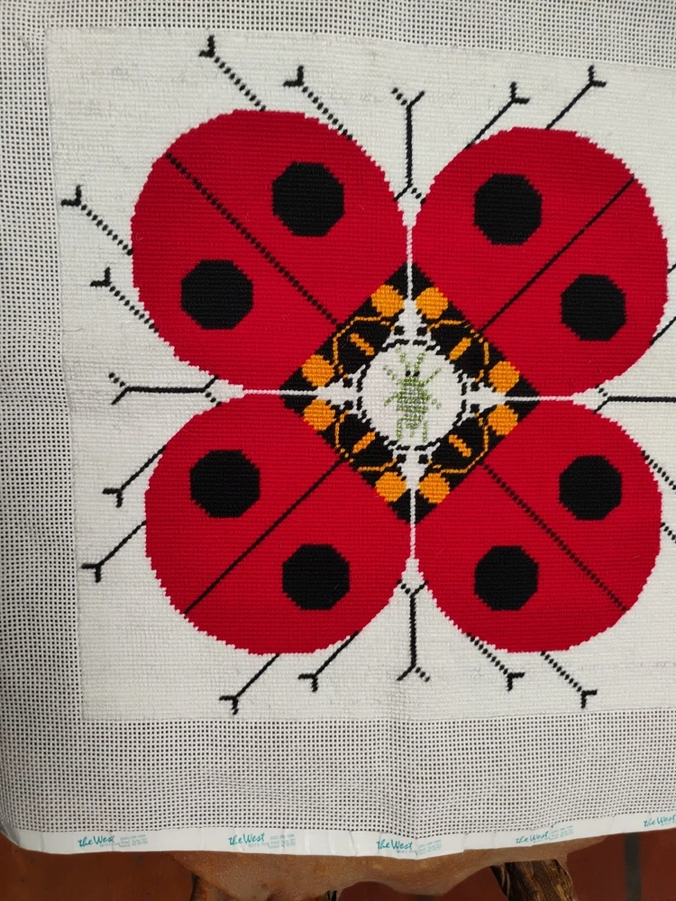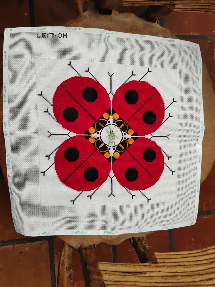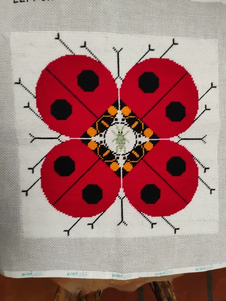 charlie Harper lady bug knitted needle point 15 \1/2 inches square shape