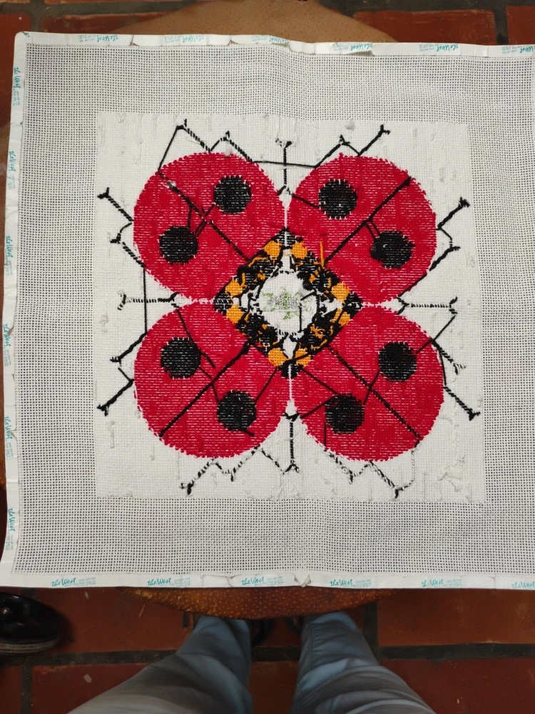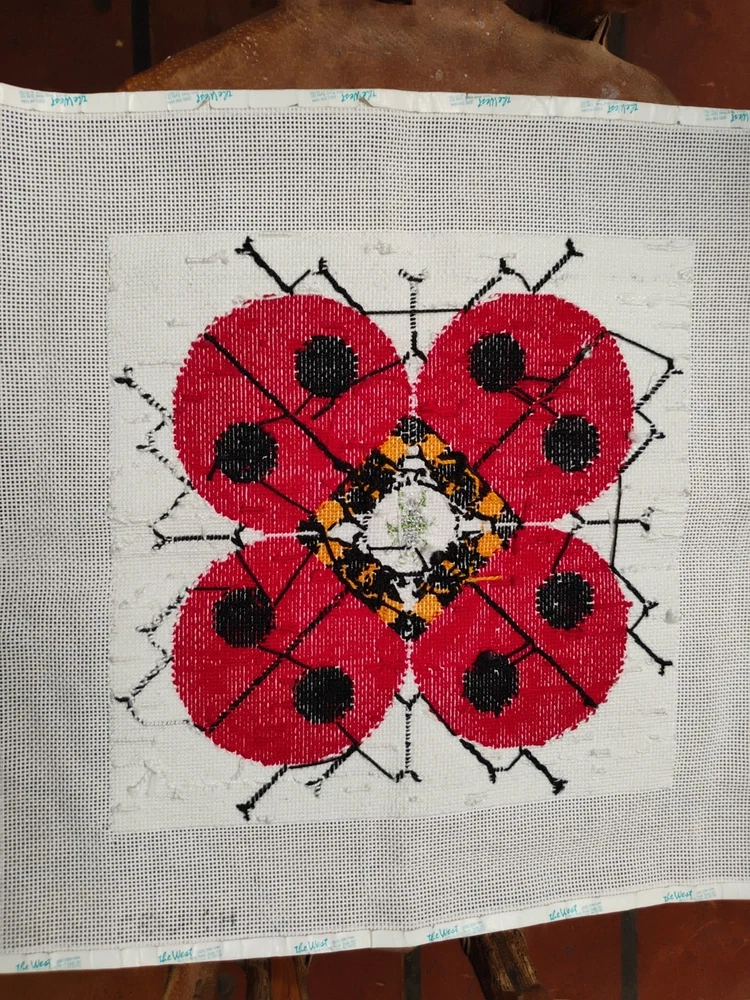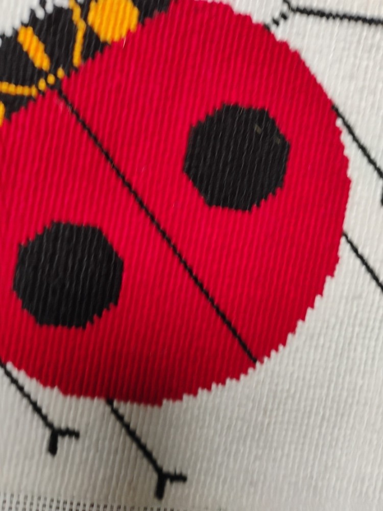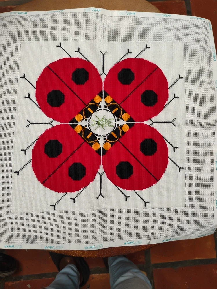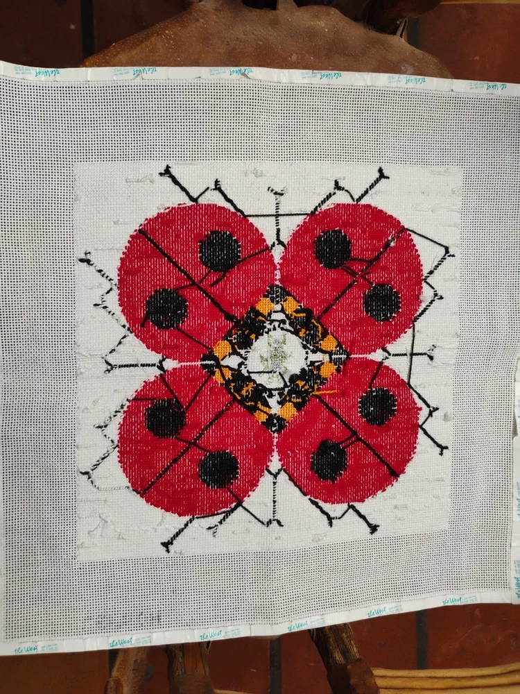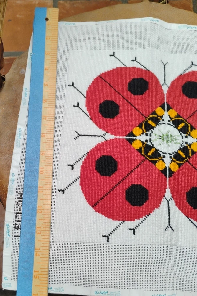 charlie Harper lady bug knitted needle point 15 \1/2 inches square shape