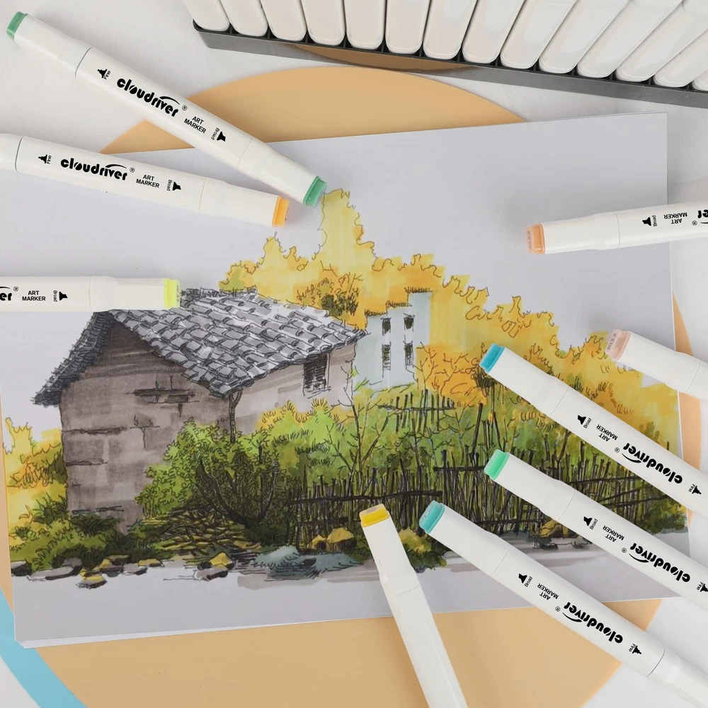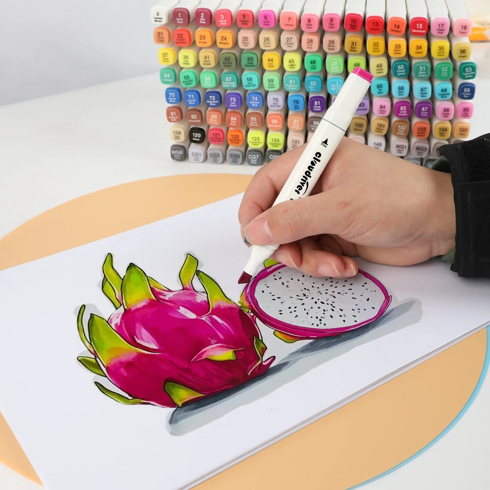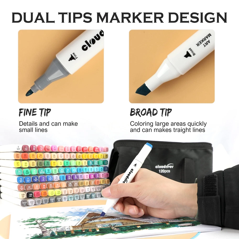 120 colors alcohol markers For Coloring Drawing Sketching Alcohol Based Markers Set With 120 Colors: Quality Alcohol-based ink. Excellent smudge-proof and waterproof qualities on most surfaces. Dual Tips: Broad chisel (approx. 1-7mm) and fine point(approx. 1-3mm) nibs for precise highlighting and underlining. Allowing you to write in both thin and thick lines, providing great versatility. Easy To Use, No Smudging: Each Marker Cap is marked with color code at both ends makes it easier to choose right color. Premium Materials: The marking pen is made of environmental protection material. You don't have to worry about stains and spots, ink is quick-drying and drawing smooth. cloudriver alcohol Permanent Markers work well on paper, ceramics, plastic etc.