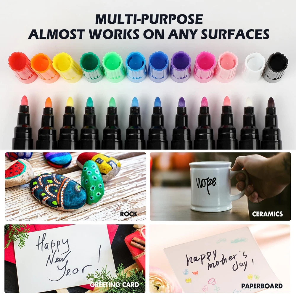cloudriver Acrylic Paint Pens, Bulk Pack of 48, 12 Colors Water-based Ink Mar...